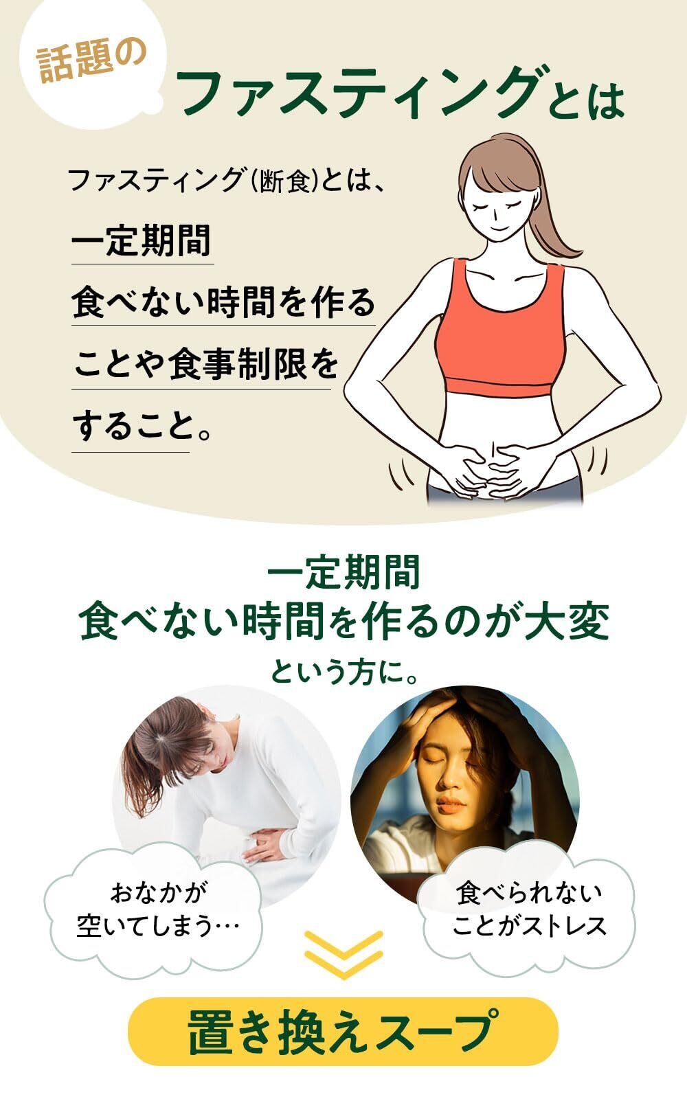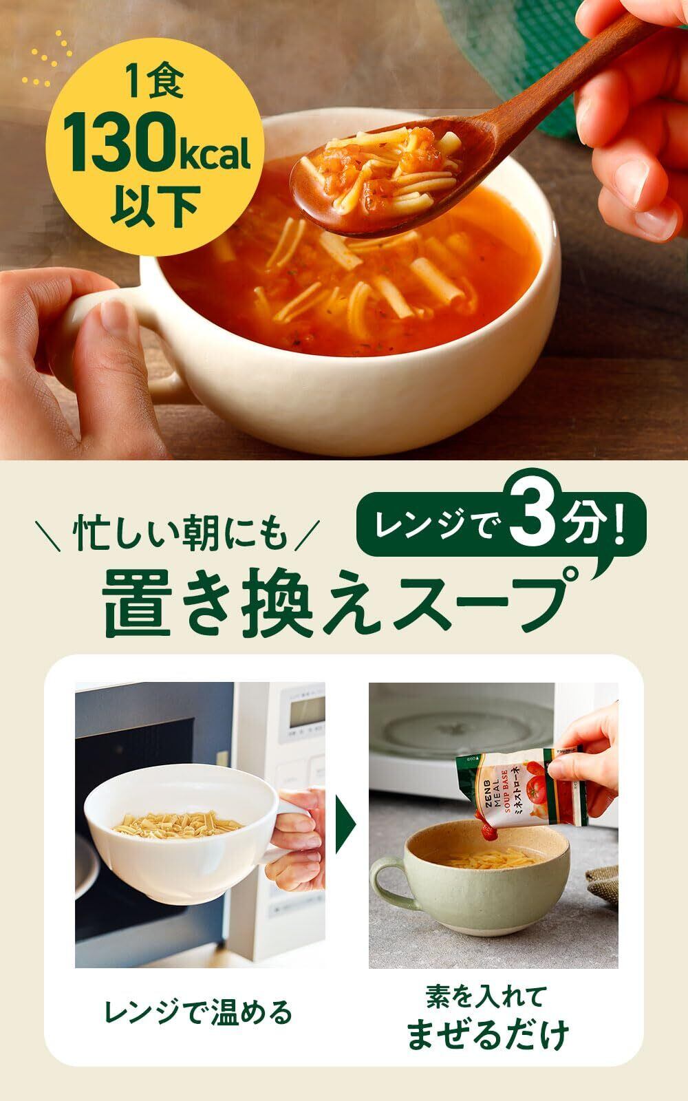 こんな方におすすめ:ファスティング ダイエット( 断食 と 回復食の期間 )は常に空腹を我慢しないといけない のが気になる、ダイエット 中も食べたいものを食べたい、いつものごはんから 置き換え られるものを探している、糖質を控えたい、グルテンフリー の食品を食べたい、食物繊維 不足が気になる、 大豆ライス ( ダイズライス )、ダイエットスープ、春雨スープ、カリフラワーライスを食べている方、朝食はヘルシーでおいしいものにしたいけど、そんなに手間はかけられない方に、カンタンなのにおいしさ満足で、不足しがちな栄養を補える置き換え提案です。