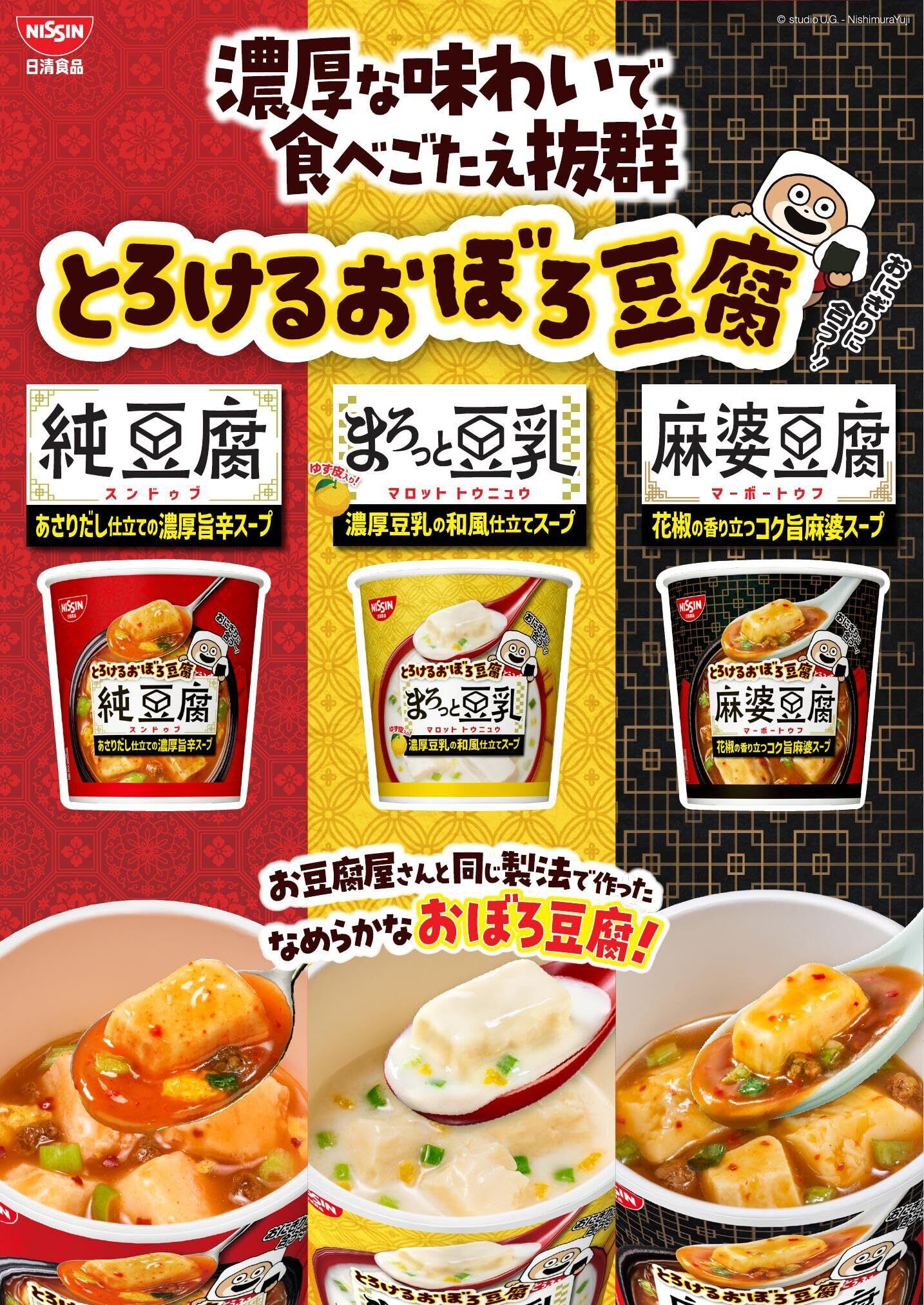 「とろけるおぼろ豆腐」シリーズは、なめらかでとろける食感の大きな豆腐が入ったカップスープです。
