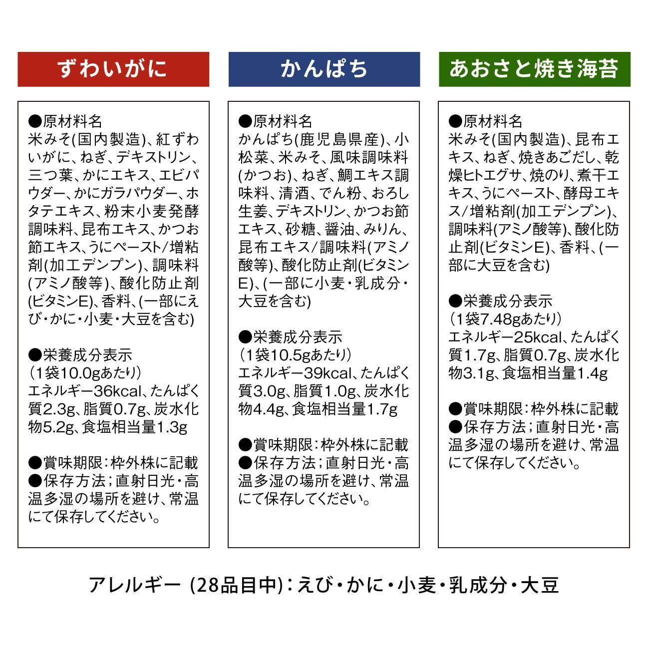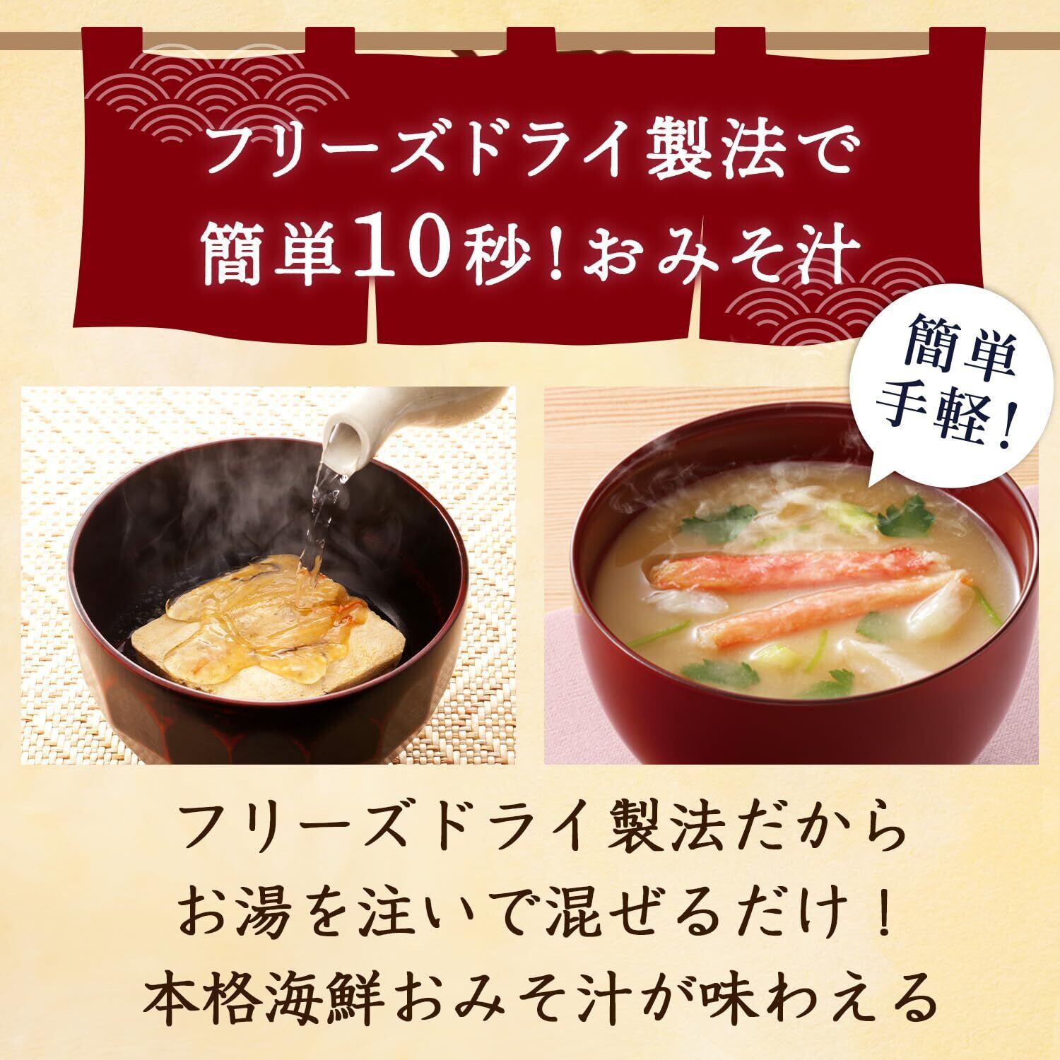 【贅沢な海鮮の旨みと香り】海鮮おみそ汁 かにの旨みが引立つ「紅ずわいがに」、魚介の旨みたっぷりの「かんぱち」、風味豊かな「あおさと焼き海苔」の、こだわり素材を使用したみそ汁3種セットです。