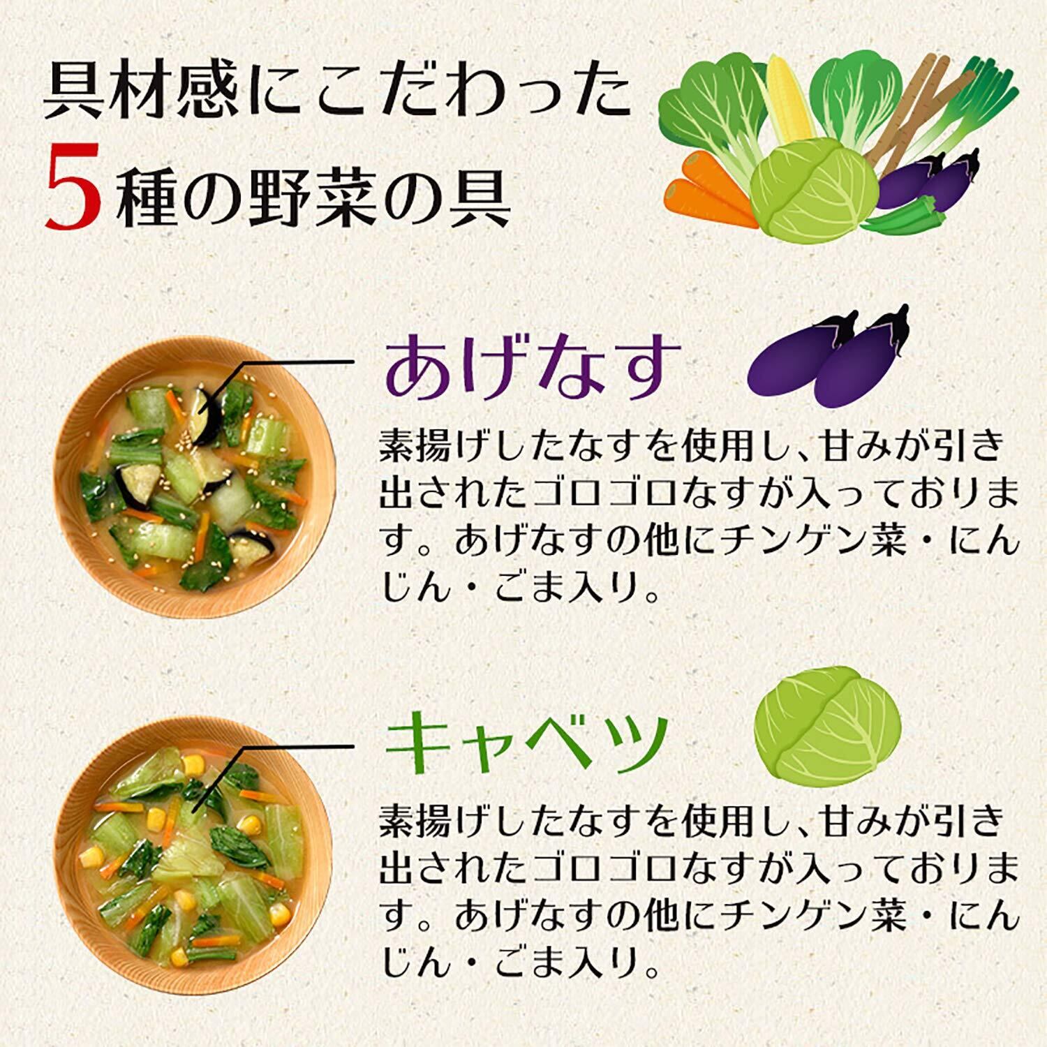 普段の食事で野菜不足を感じている方や具沢山みそ汁を好まれる方におすすめの、具材がしっかり入った即席みそ汁です。