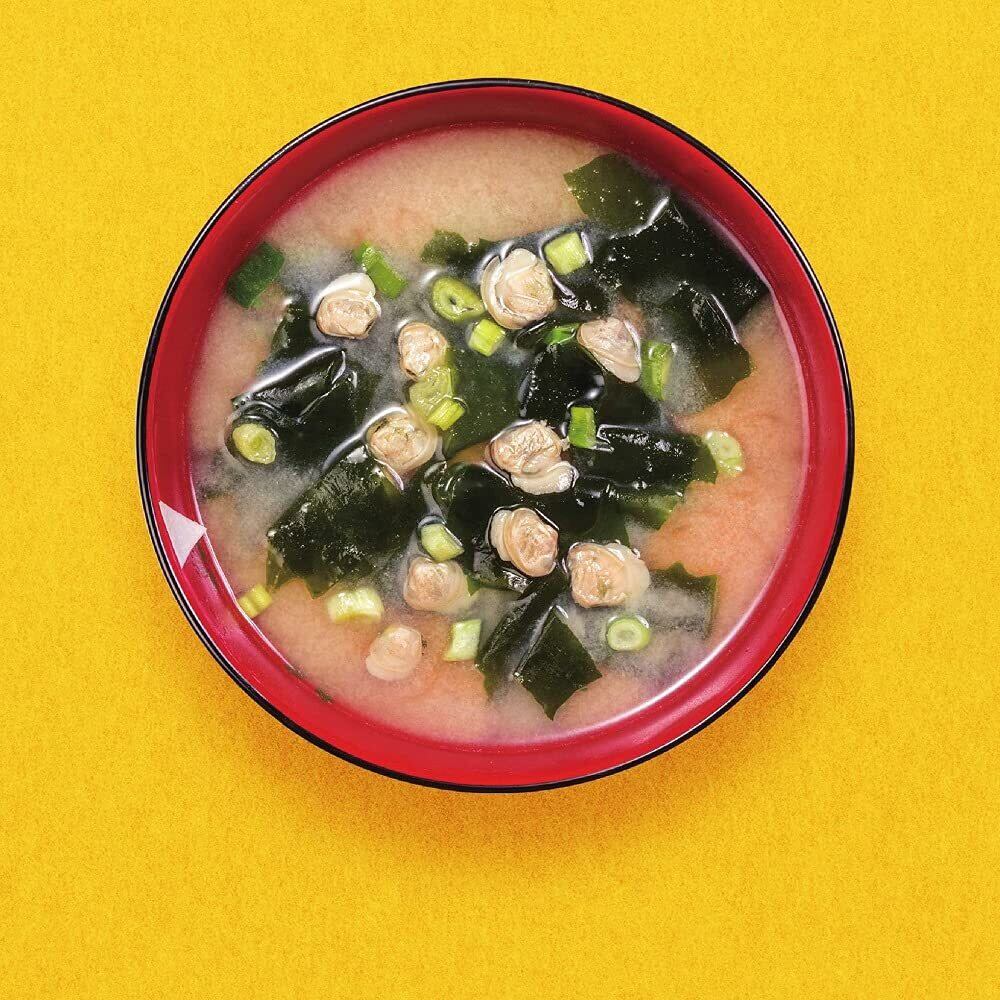 顆粒みそ(国内製造)(米みそ、食塩、貝エキス、大豆粉、酵母エキス粉末、オルニチン塩酸塩)、味付しじみ、わかめ、ねぎ/調味料(アミノ酸等)、酸化防止剤(V.E)、(一部に小麦・大豆を含む)