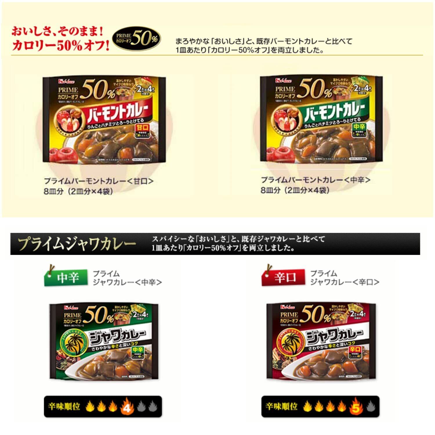 House ハウス プライムカレー4種セット (プライムバーモント甘口、プライムバーモント中辛、プライムジャワ中辛、プライムジャワ辛口) 【セット買い】【カレールー】【カロリー50%オフ】