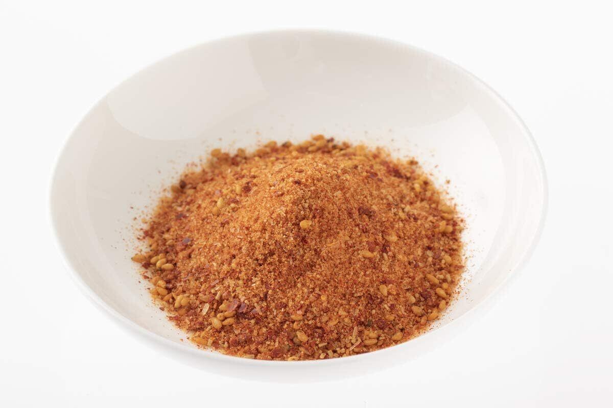 原材料:食塩(国内製造)、砂糖、唐辛子、胡麻、粉末にんにく、でん粉、しょうがパウダー、 乳糖、かつおぶし粉末、かつおエキス、酵母エキス、乳酸菌含有食品(デキストリン、加熱乳酸菌)/調味料(アミノ酸等)