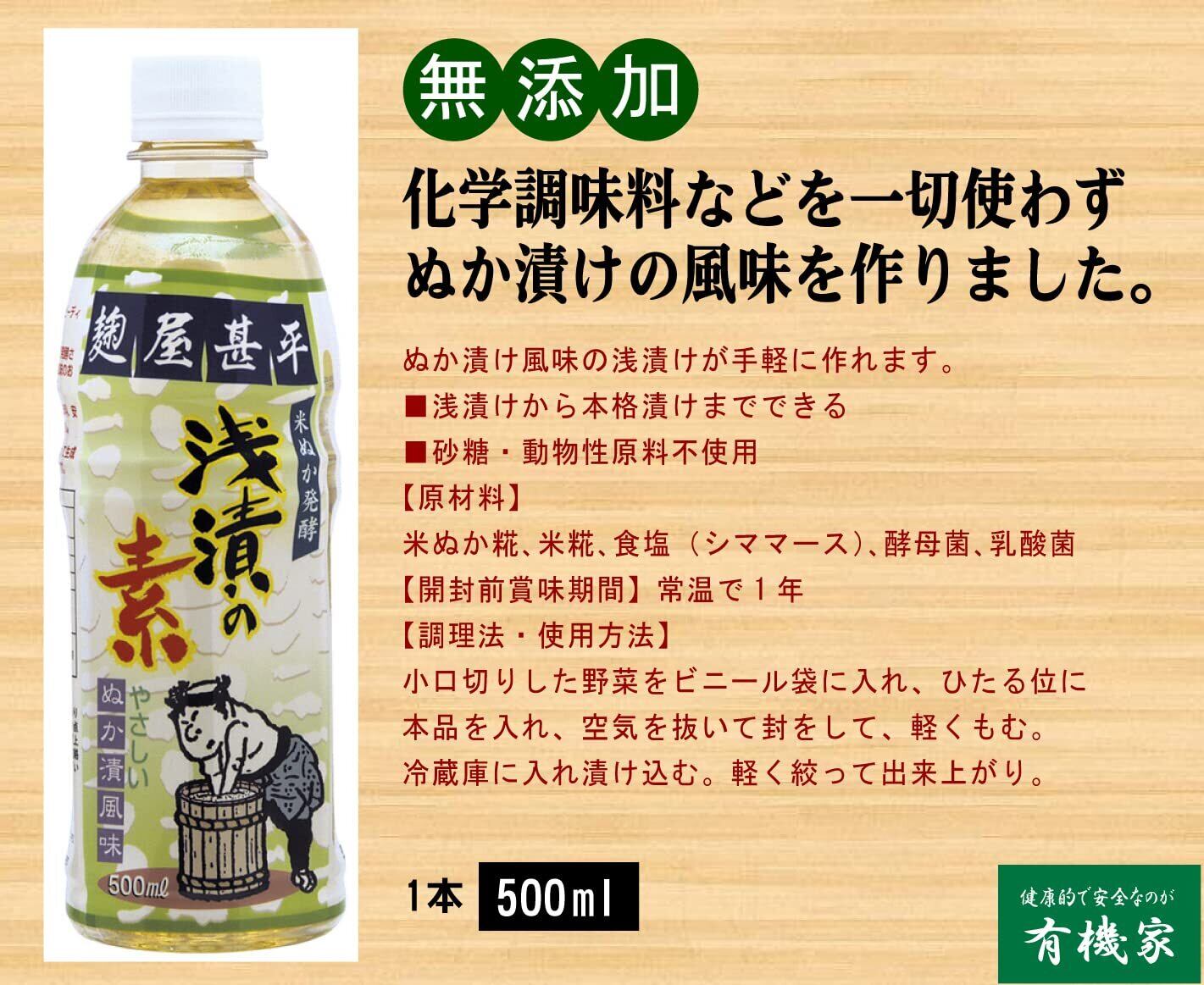 簡単ぬか漬けの素 無添加 浅漬の素 500ml×2本 宅配便米ぬか糀、米糀、食塩(シママース)、酵母菌、乳酸菌でつくった、本格ぬか漬け風味の素。