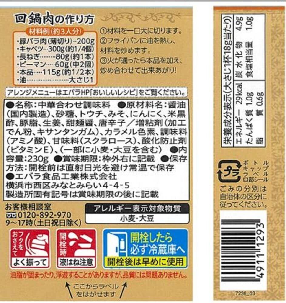 [ エバラ ] 回鍋肉のたれ 230g ×2個 ( 回鍋肉 回鍋肉の素 タレ )