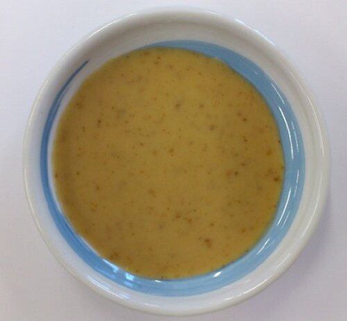 原材料:食用植物油脂、しょうゆ、砂糖、醸造酢、ごま、食塩、卵黄、増粘剤(加工でんぷん、増粘多糖類)、酸味料、調味料(アミノ酸等)、甘味料(アセスルファムカリウム)、香辛料抽出物、(原材料の一部に小麦を含む)