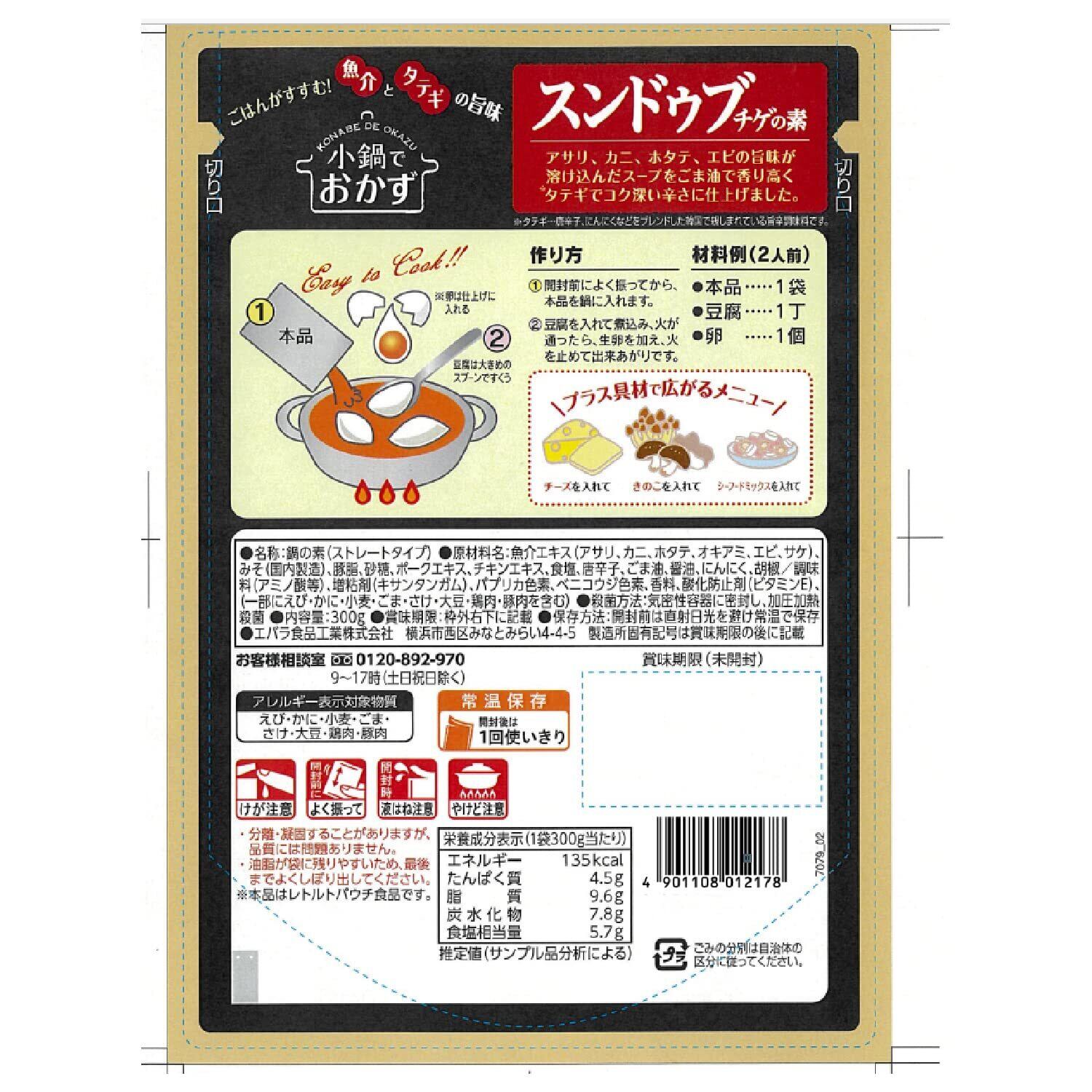 [ エバラ ] 小鍋でおかず スンドゥブチゲの素( スンドゥブの素 チゲ鍋の素 )300g ×3袋