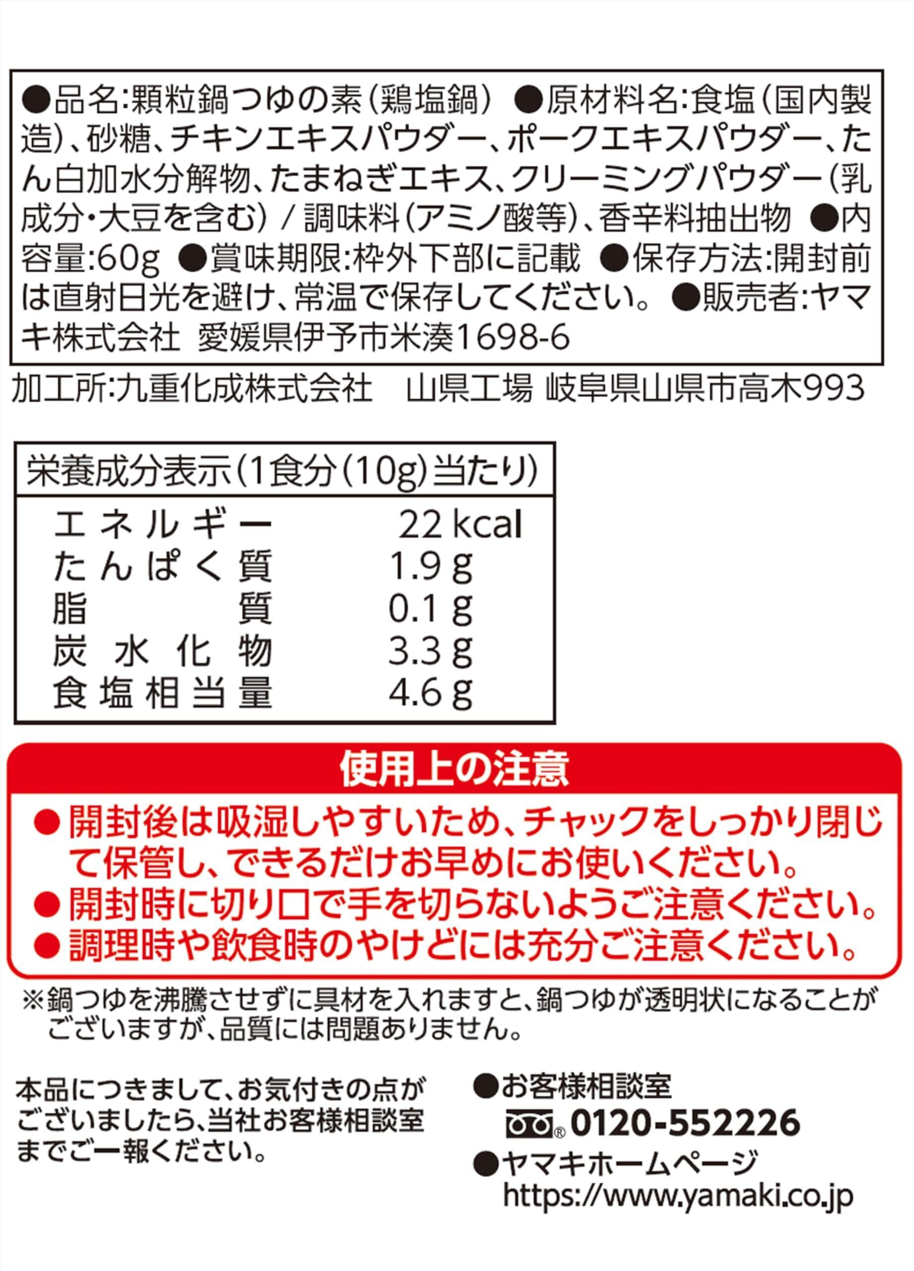 ヤマキ サッと鍋鶏 しお鍋の素 60g ×4個