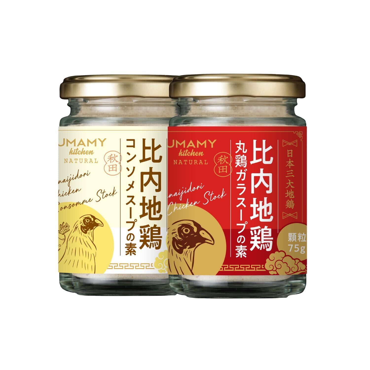 UMAMY 比内地鶏丸鶏ガラ&コンソメスープの素2個セット 化学調味料不使用 無添加 塩分控えめ パウダー 瓶入り 父 誕生日プレゼント 女性 人気 ギフト おしゃれ プレゼント 人気商品 お歳暮 お歳暮ギフト 冬ギフト 福袋