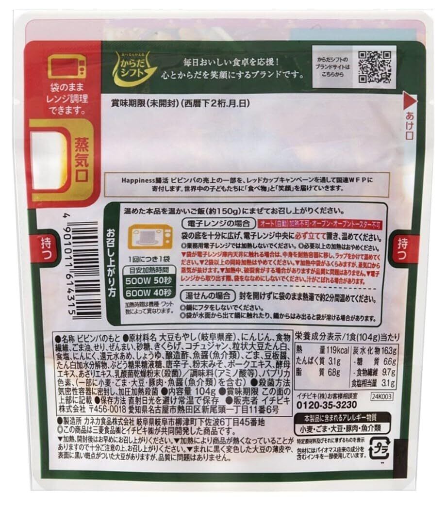 からだシフト Happiness腸活 ごはんとまぜて ビビンバ (104g ×5個) 腸活ご飯 (簡単調理) 電子レンジ対応パウチ 時短調理 一人暮らし