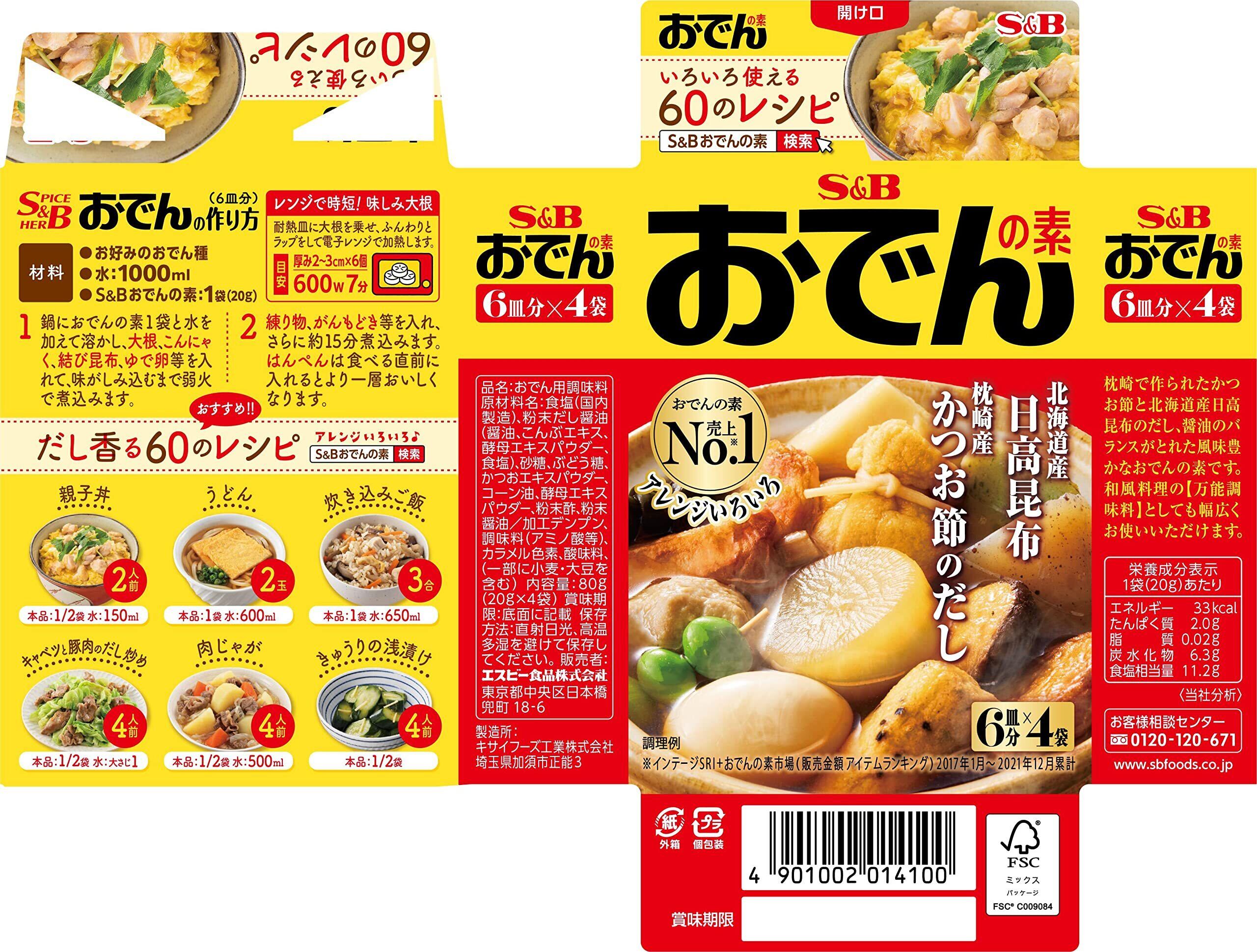 鹿児島枕崎産のかつお節と北海道日高産昆布のだし、醤油のバランスがとれた風味豊かなおでんの素です。