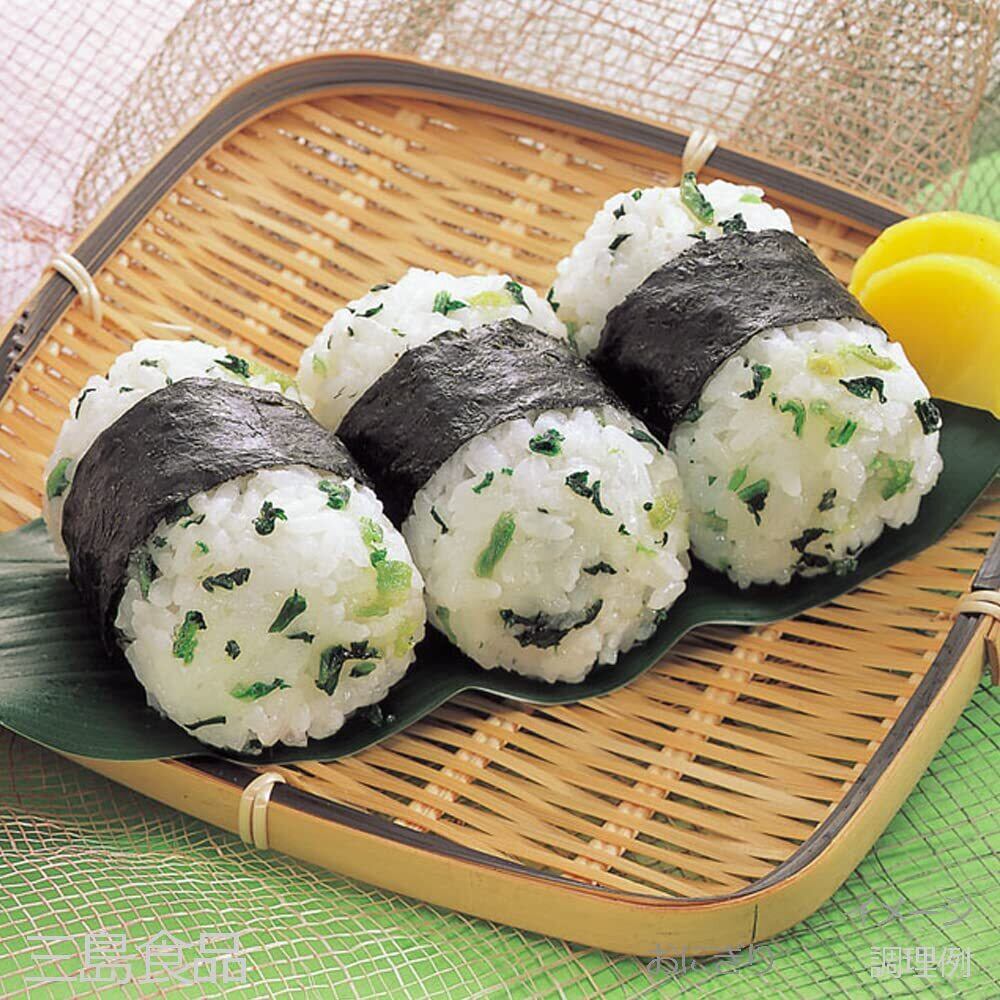 青菜の風味と色合いを生かした混ぜごはんの素です。広島県特産の広島菜に、京菜と大根葉をブレンドしています。