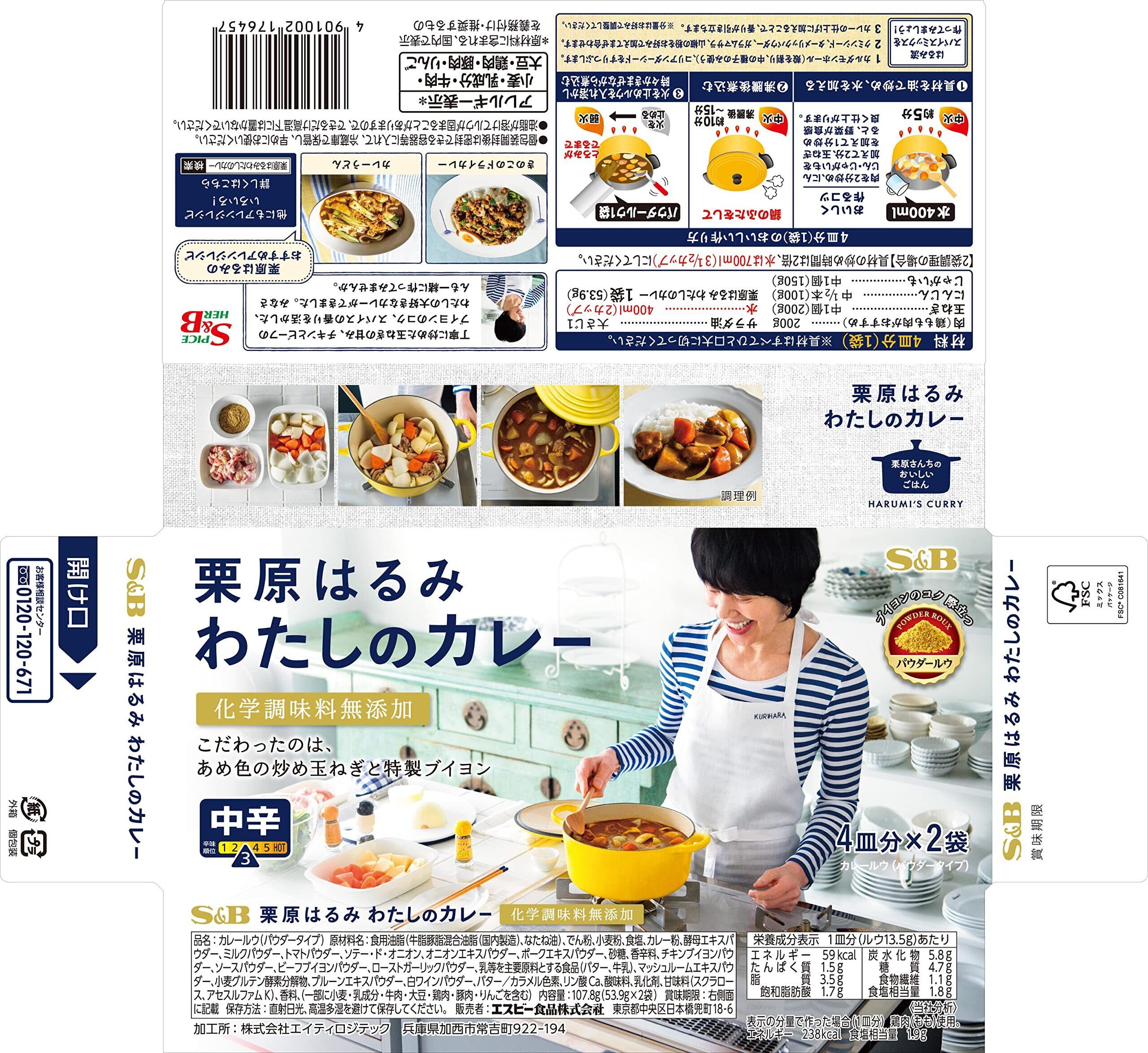 S&B(エスビー) 栗原はるみ わたしのカレー 中辛 107.8g