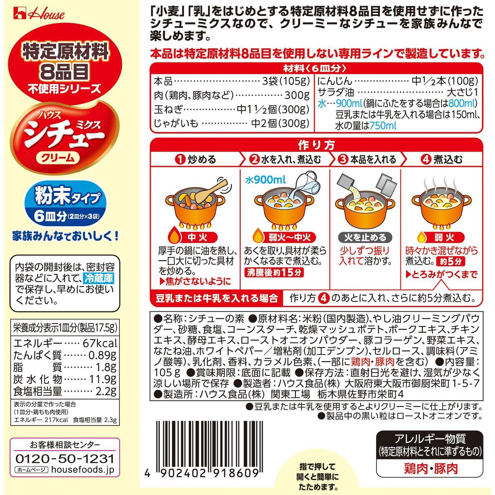House シチューミクス ハウス食品 特定原材料 8品目不使用 シチューミクス クリーム 105g ×3個 [食物アレルギーのある方でもクリーミーなシチューを食べられる]