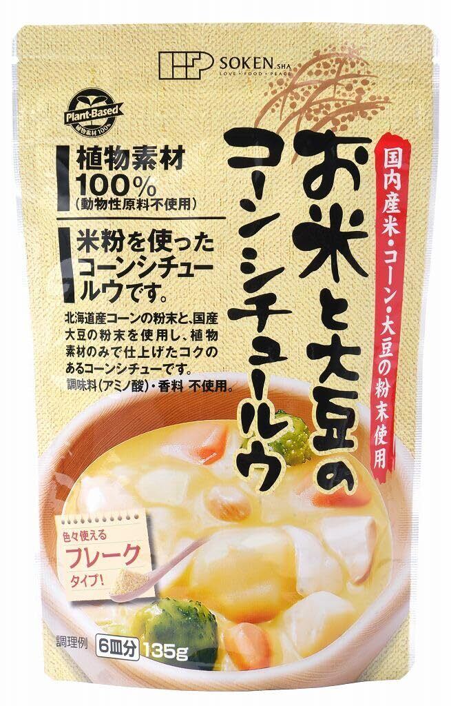 国内産米粉、北海道産コーン、国内産大豆を使ったコーンシチュールウです。