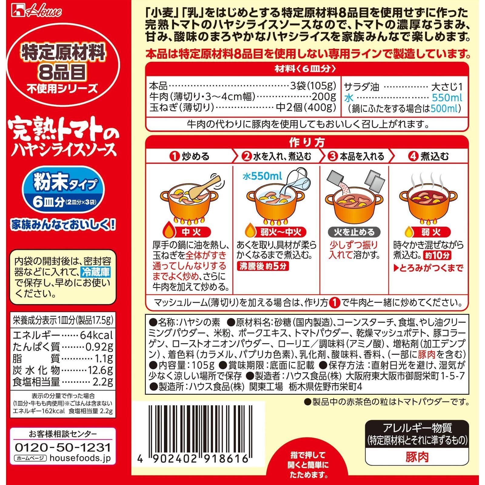 完熟トマト House ハウス食品 特定原材料8品目不使用 完熟トマトのハヤシライスソース 105g ×3個 [食物アレルギーのある方もバランスの良いコクがあるまろやかなハヤシライスを食べられる]