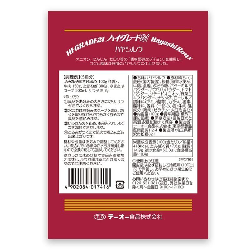 テーオー食品 ハイグレード21 ハヤシルウ 100g×3袋
