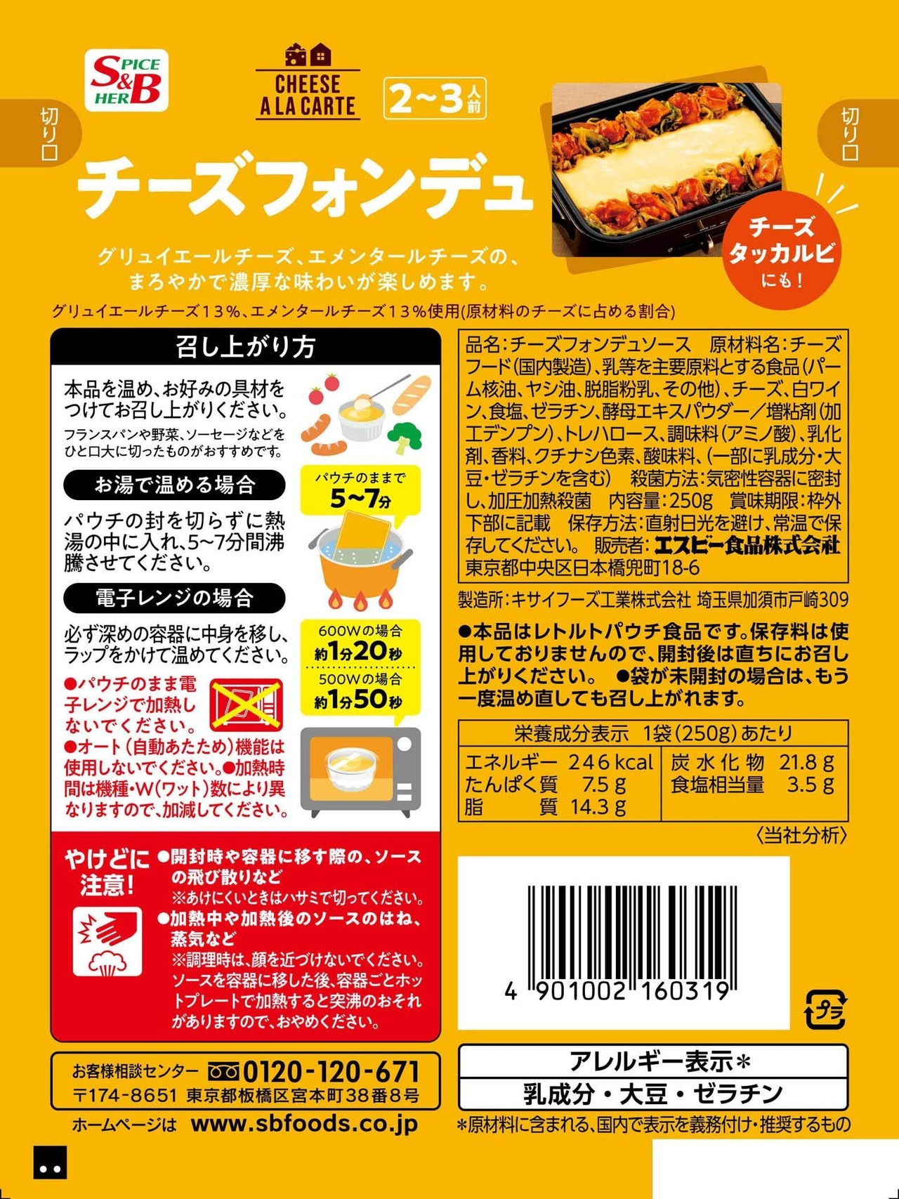 S&B チーズフォンデュ 3種のチーズソース 250g×5袋