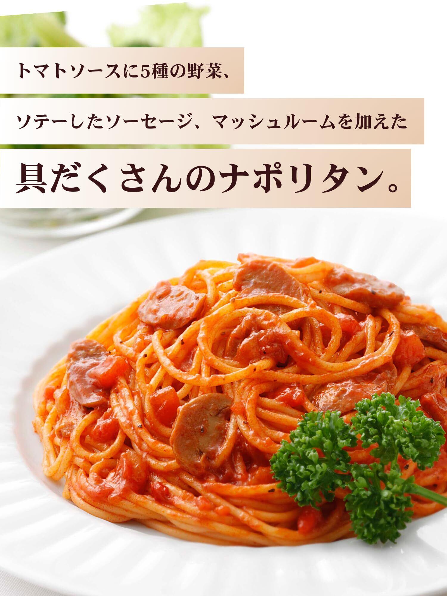 【ナポリタン】【洋食屋のナポリタン】ホテルや老舗洋食屋のようなトマトソースをベースに仕立てたナポリタンです。さわやかな酸味とほどよい甘さが特徴の具だくさんなソースをお楽しみください。【バランスのよいトマトソース】さわやかな酸味のダイストマトと、コクのあるトマトペースト、旨みを含むトマトケチャップを使用し、バランスのよいトマトソースに仕上げました。【5種の野菜、ソーセージの具材感】5種類の野菜(たまねぎ、セロリ、トマト、にんじん、ピーマン)やソテーしたソーセージが入った、具材感たっぷりのソースです。具材から出る甘みや旨みも楽しんでいただけます。 ソテーしたソーセージの香りは食欲をそそります。