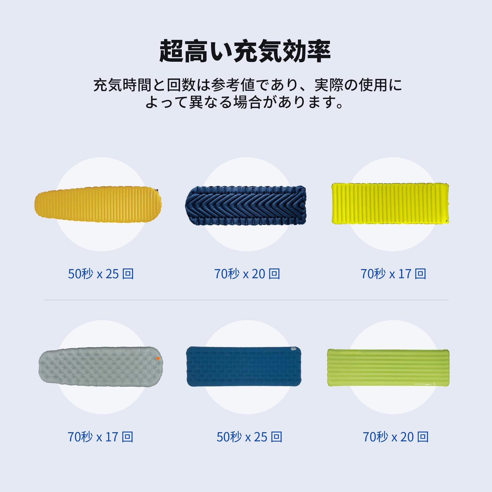 【強力な膨張・収縮機能】2.5kpaの空気圧により、1分以内にエアマットレスを素早く膨らませることができます。フル充電で20回以上使用可能です。