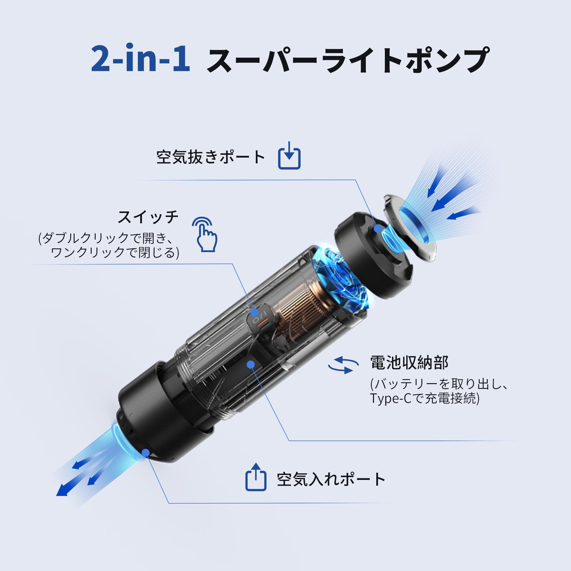 【珍しい静音設計】さらに、騒音レベル68デシベルで静かに作動し、静かで快適な膨らませ体験をお楽しみいただけます。