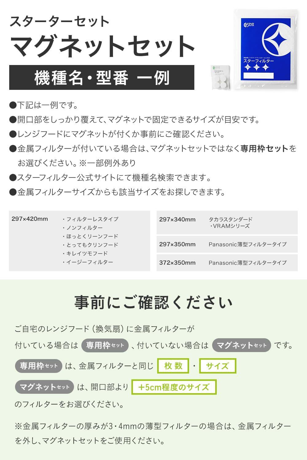 スターフィルター 換気扇フィルター キッチン スターターセット レンジフード 強力マグネット+交換フィルタ―3枚 カバー 換気扇 フィルター 整流板 不燃性・高除去率のガラス繊維タイプ 厚手 SFSETM03-0-297420
