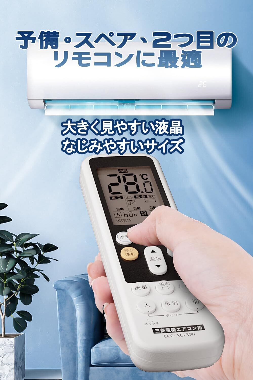 【設定不要ですぐに使えるかんたんリモコン】エアコンリモコン 汎用 三菱電機 霧ヶ峰(MITSUBISHI) 家庭用。※一部の機種については、MODEL変更が必要です。MODEL切り替え可能です。「スイッチボタンを細いピン(爪楊枝やシャープペン)などで軽く1回プッシュします。」 *ご注意ください:店舗・事務所用パッケージエアコン(Mr.SLIM)に対応しかねます。