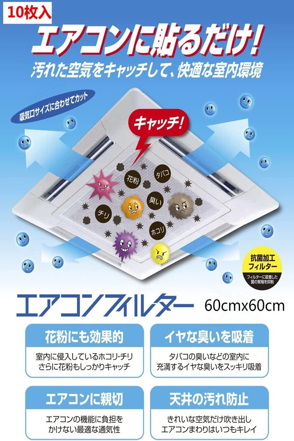 天井埋込型エアコンフィルター EC-003 10枚入 60cm×60cm エアコンカバー 汚れ防止 ほこり取りフィルター 花粉 エアコン 埋め込み型 交換品 (10枚入)