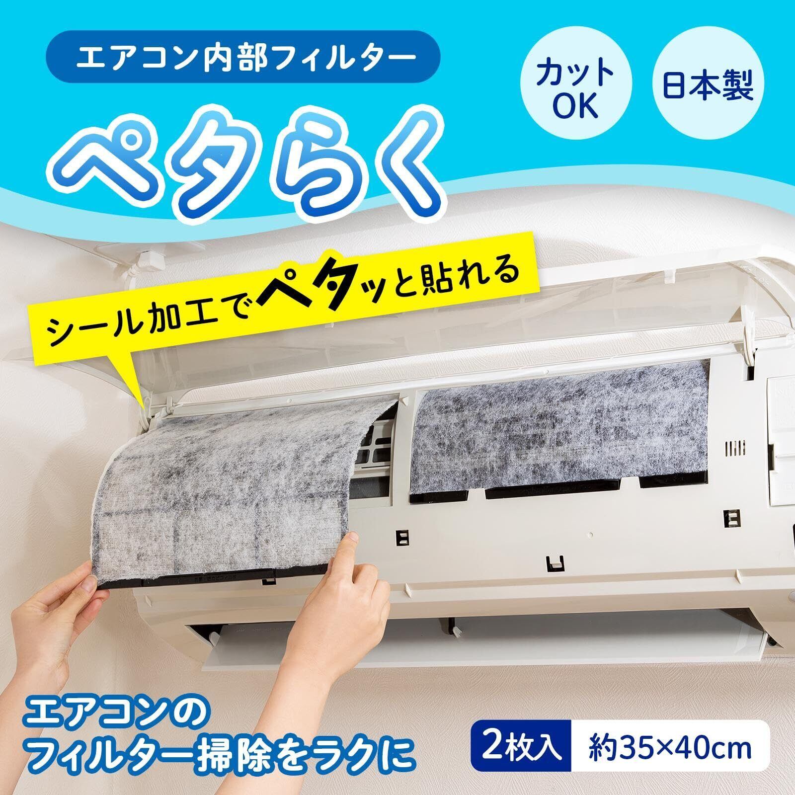 コモライフ エアコン内部フィルター ペタらく 2枚入 (35×40cm) エアコン インナー フィルター シール 日本製