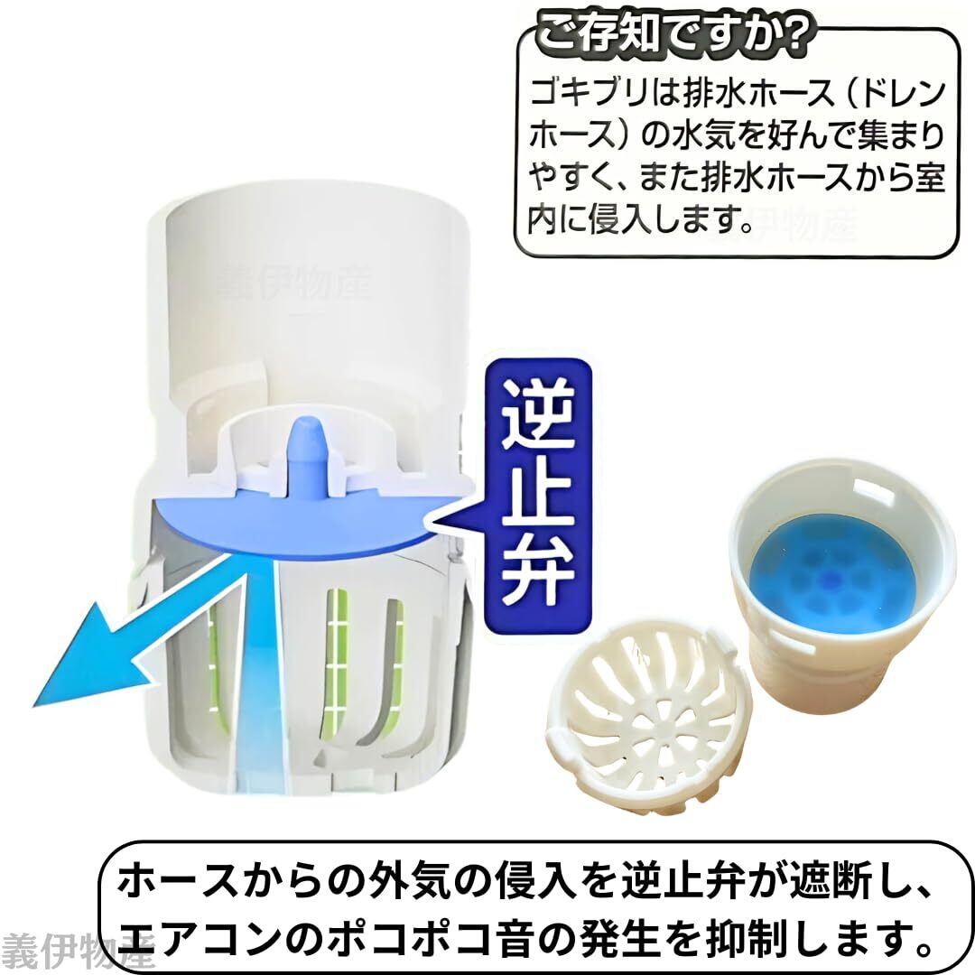 エアコンの室外機の排水パイプにつける防虫キャップです。排水パイプの口につけて、虫の侵入を防ぎ消音効果もあります。 ホースからの外気の侵入を逆止弁が遮断し、エアコンのポコポコ音の発生を抑制します。
