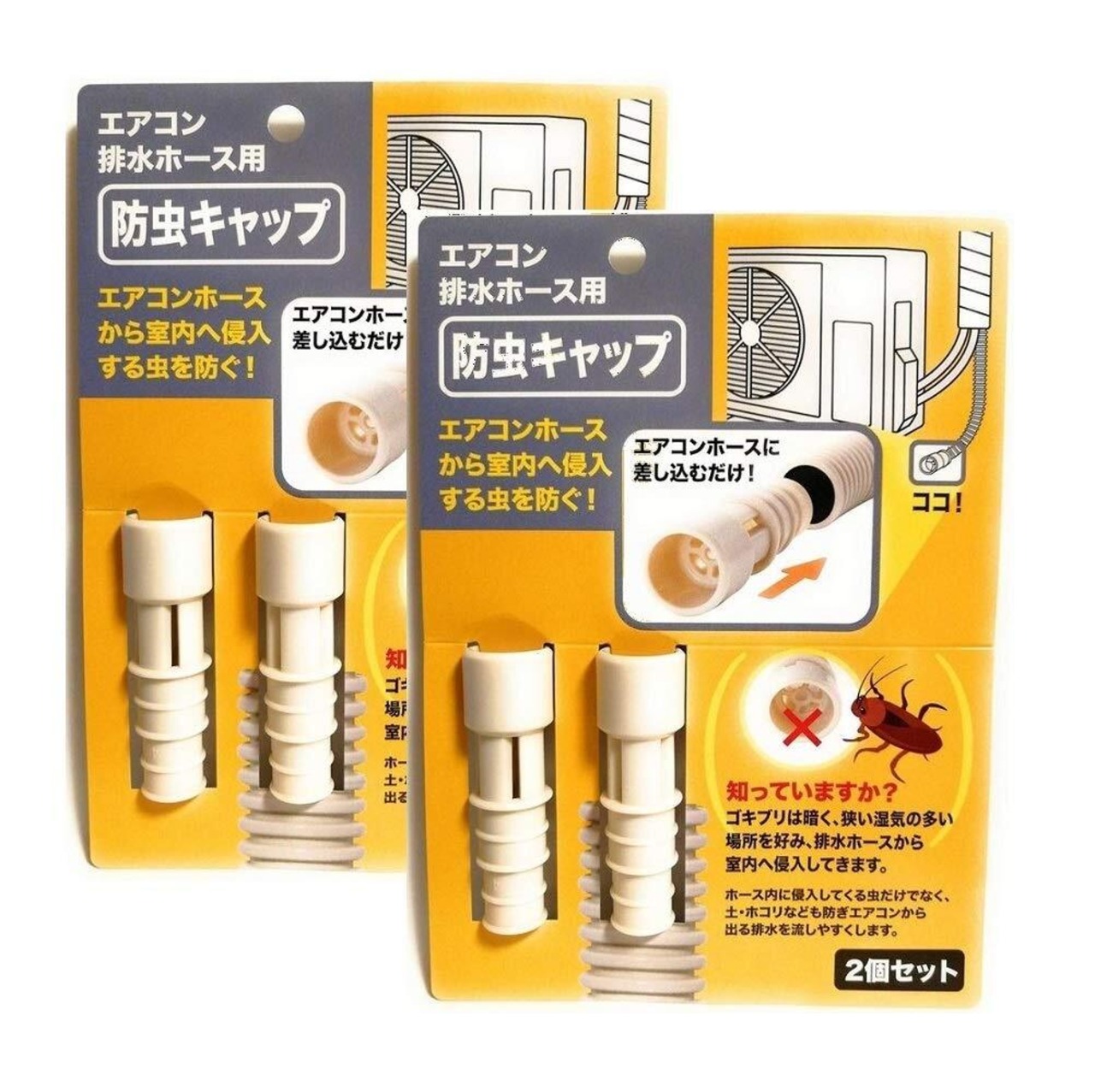 日本製 室内へ侵入する虫を防ぐ防虫 キャップ エアコン 排水ホース用(2個セット Ⅹ 2)