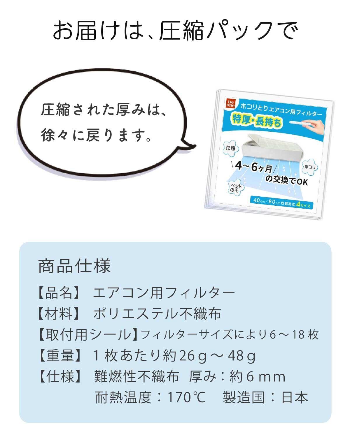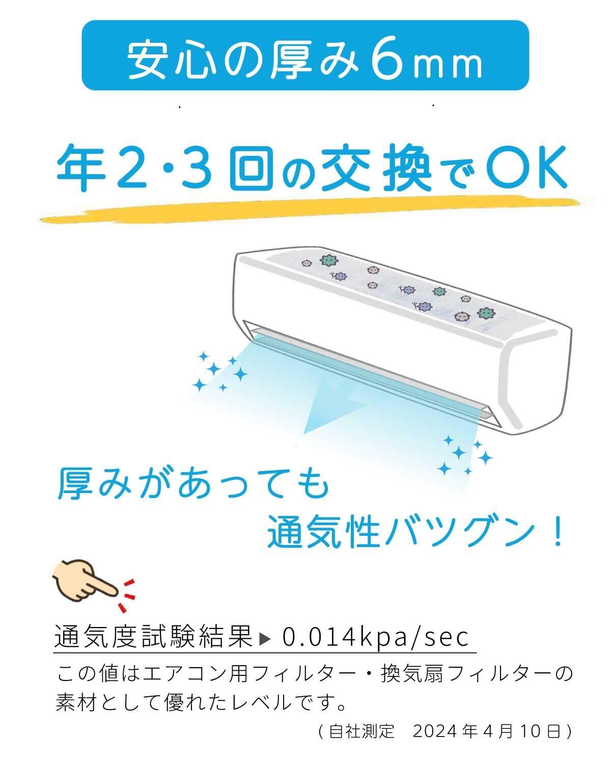 厚み6mmのエアコンフィルター 選べる5サイズ サイズはカットして自由に調整可能 テープファスナーで簡単装着