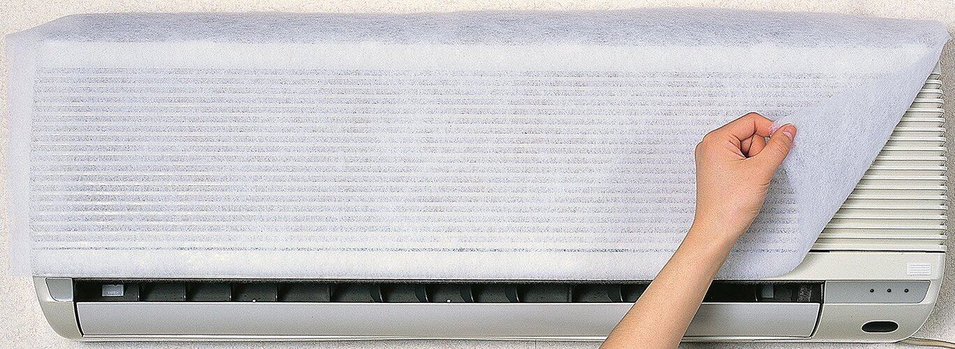 ●エアコン室内機の吸気口に取り付けるだけで、花粉・ホコリ・ダニ・タバコのヤニ等をキャッチし、お部屋の空気をキレイにする