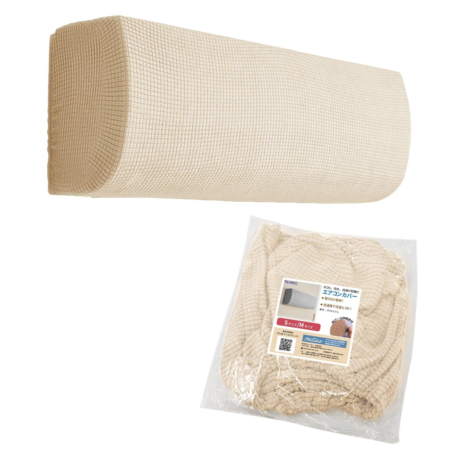 mitas エアコンカバー アイボリー Mサイズ エアコン室内機カバー 布製カバー 汚れ防止 ホコリ対策 伸縮 ゴム ほこり 汚れ 日焼け 防止 着脱 簡単 お手入れ簡単 洗える 収納カバー 全面カバー エアコン クーラー ストレッチ生地 無地 シンプル おしゃれ 洗濯機OK 防塵 フィット感
