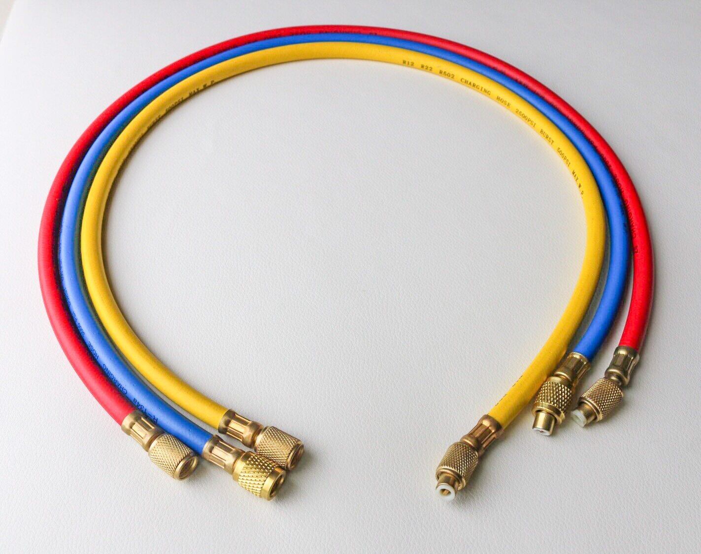 ご使用のエアコンやお車のエアコンが復活!ガスの少ない冷媒のチャージ作業に欠かせないマニホールド用交換用チャージホース。3本セットです(赤、黄、青)