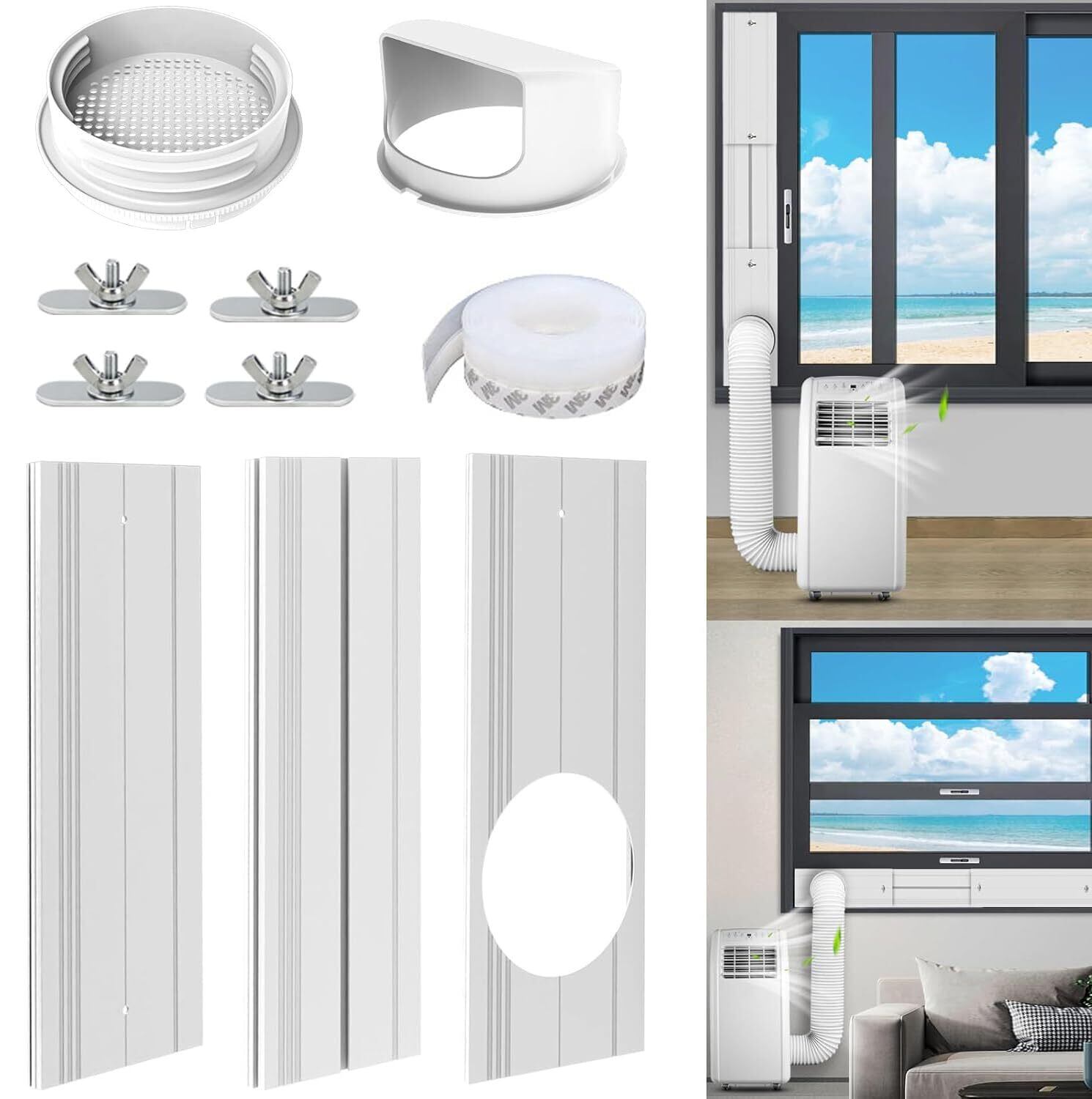 窓用ダクトパネル テラス窓用パネル 3枚セット アップグレード 窓枠高さ43から116cmまで使用可 二重径対応 雨よけデザイン ポータブルエアコン スポットクーラー 排気 ウィンドウアダプタ ほどんとエアコンタイプ対応