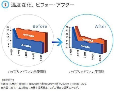 ハイブリッドファンを使うと部屋全体の温度差が解消されます。結果、エアコンの設定温度を低くしても暖房効果を得られます。※最大3℃程、設定温度を下げられます。