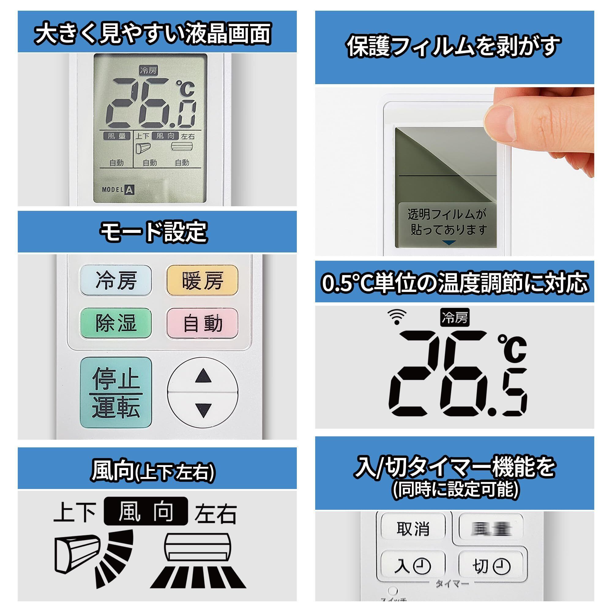 【日本語説明書付き】東芝エアコンリモコンリモコンの機能や操作方法を理解しやすく使いやすくするために、このエアコンのリモコンのボタン配置、ディスプレイ、付属の説明書はすべて日本語になっています。ご不明な点がございましたら、お気軽にお問い合わせください。お客様にご満足いただけるよう全力を尽くします。