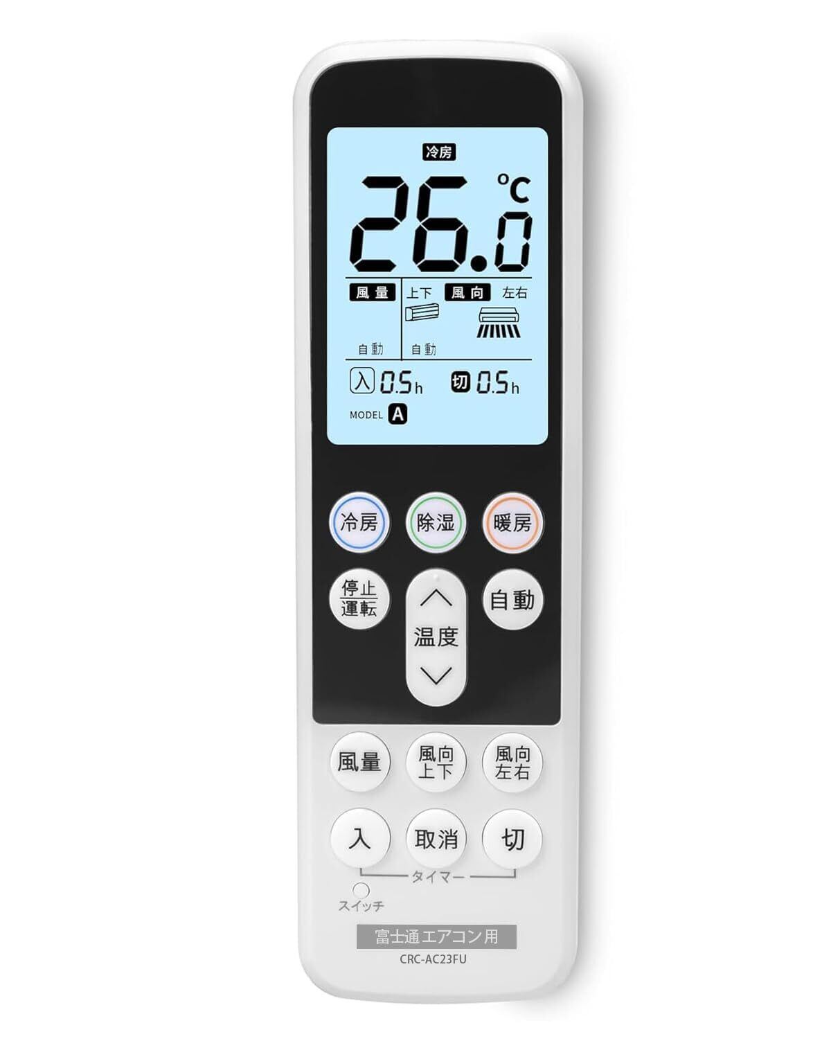 エアコンリモコン (富士通 用) 家庭用 設定不要 らくらくリモコン 夜間の操作に便利なバックライト機能付き 2000~2022年製対応 日本語説明書付き 100V用 富士通ゼネラル用