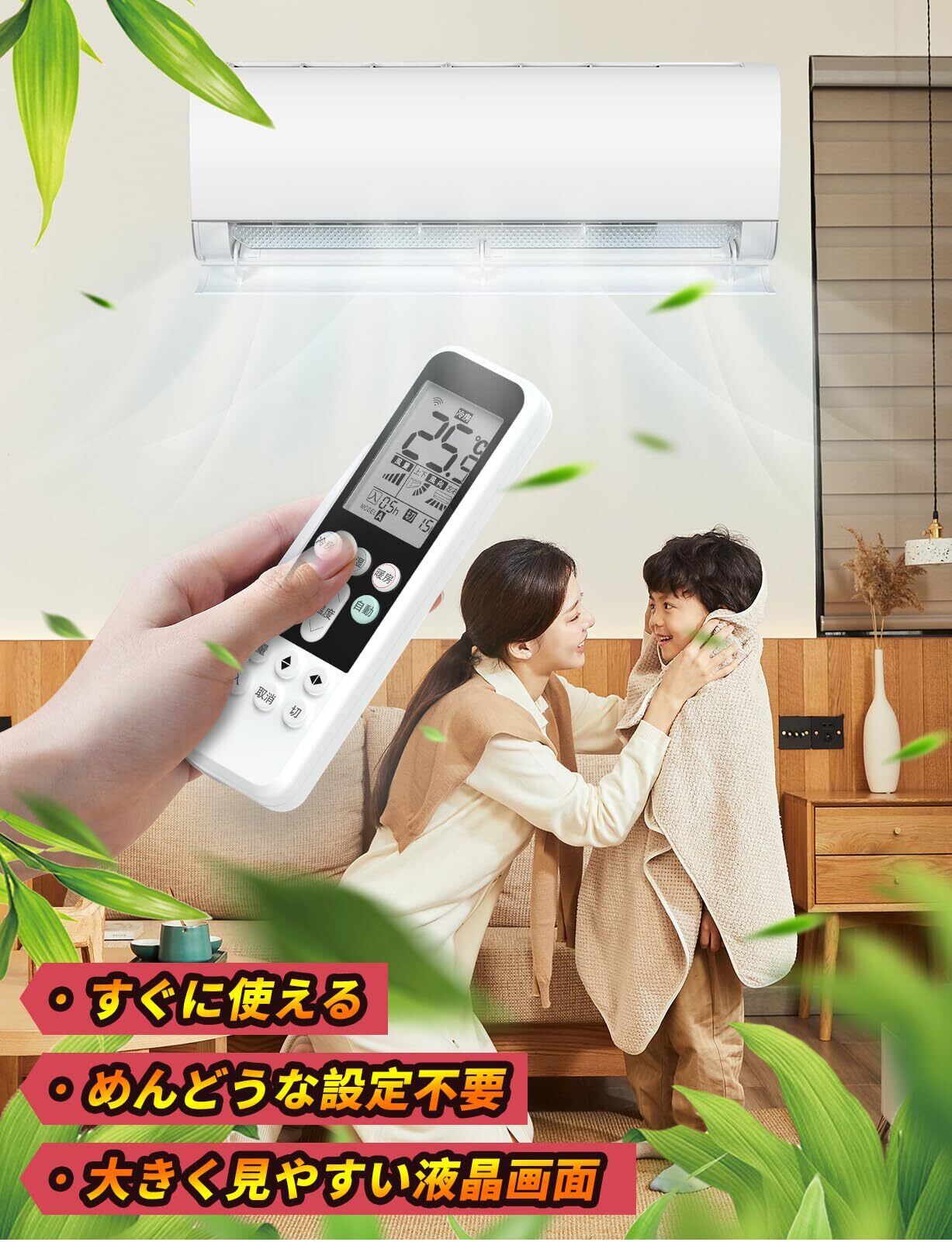 【設定不要】シンプルなデザインで操作が簡単。ややこしい設定は不要です。エアコンのリモコンが届いたら、電池(単四形乾電池2本 別売り)を入れるだけですぐに使えます。余分な設定や手順・順序などは不要。時間と労力が省け、リモコンの利便性を享受できます。操作手順は易しいので、誰でも気軽に使うことができます。