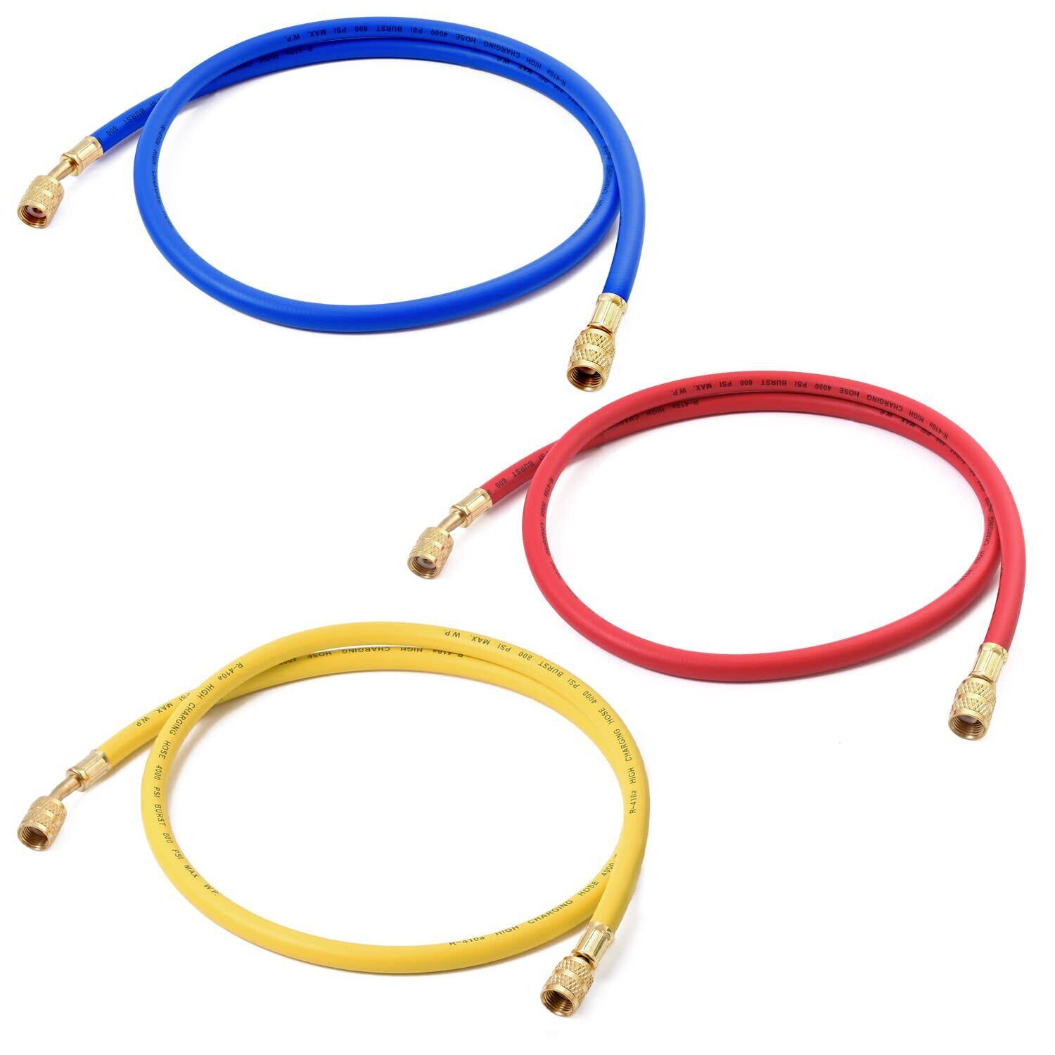 〈HOTEISON〉R410A R32 用 エアコン ガス チャージホース 3本セット 90 / 120cm (120cm)