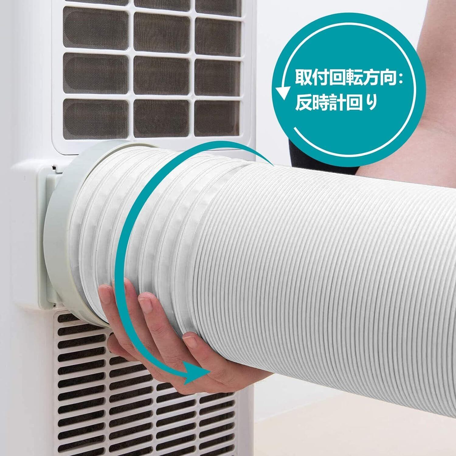 【取付簡単】エアコン換気ホースの両端は反時計回りの回転パターンので、エアコン用コネクタの取り付け方向は反時計回りが必要です。交換準備の排気ホースを伸ばしてから、反時計回りで回転して、所定の位置にはめ込みます。ご注意:購入する前に、サイズと回転方向が正しいか確認しお願いします。