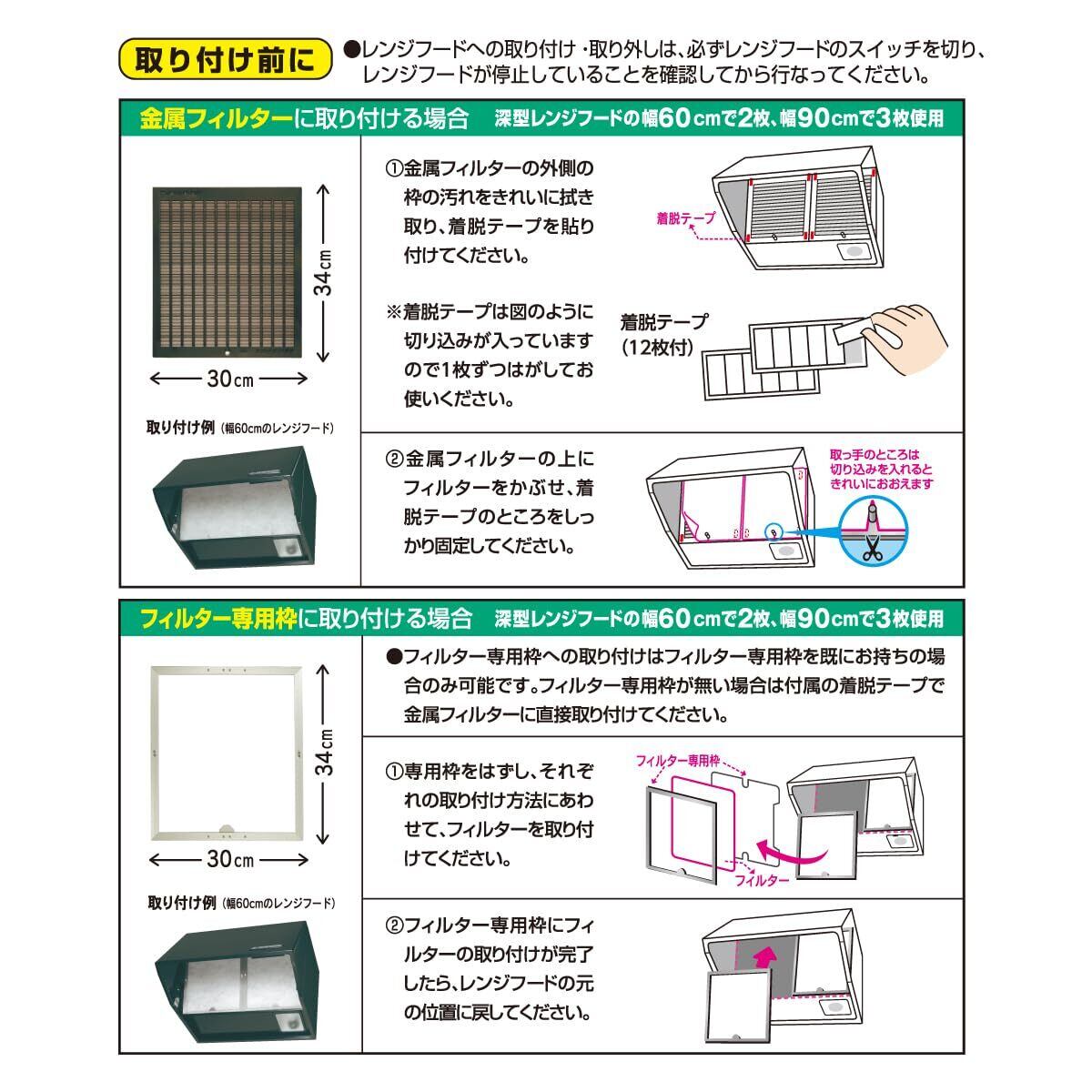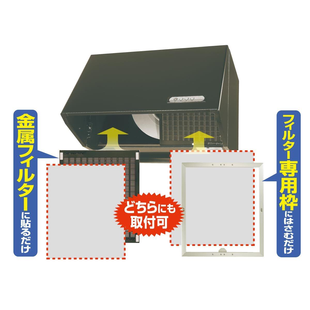 ●金属フィルターおよびフィルター専用枠に取り付けられます。 60cm幅で2枚、90cm幅で3枚をご使用ください