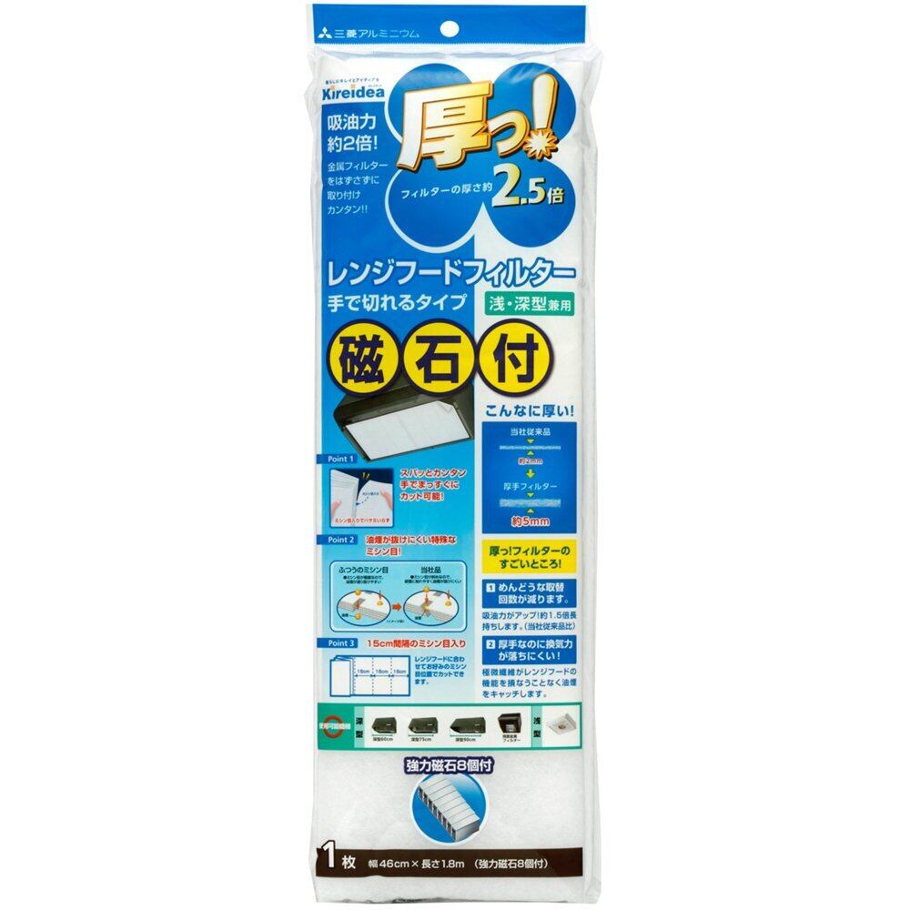 三菱アルミニウム 厚っ レンジフードフィルター日本製 磁石付 浅型・深型兼用 ホワイト 46cm×1.8m Kireidea 厚さ 約2.5倍 吸油力 約2倍 手で切れるタイプ白AFH