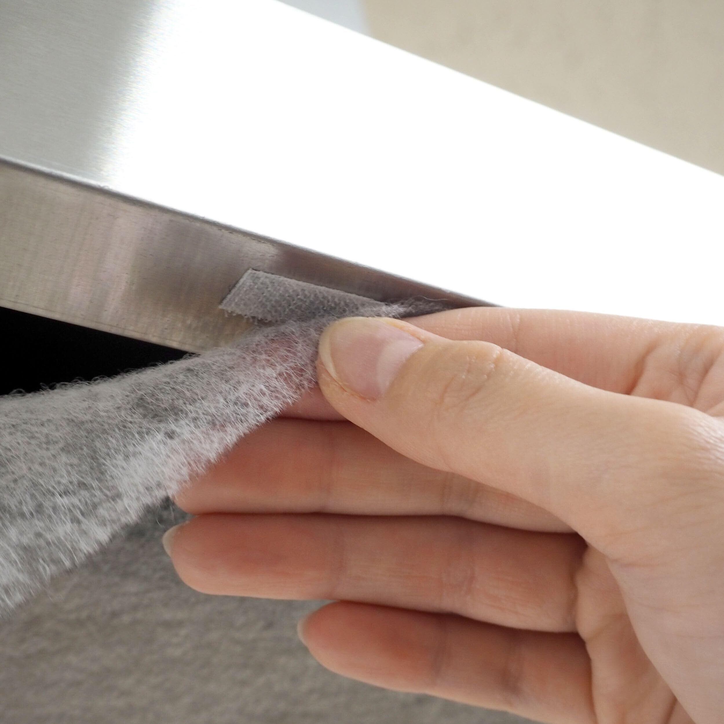 ●レンジフードの整流板とフチにテープファスナーで取付けて、吸い込み口の全面を覆うようにして使用ください