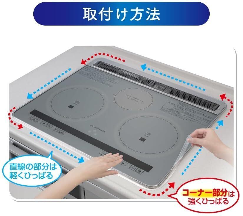 ●この製品は、ビルトインコンロのフチのすき間に入り込む汚れを防ぐものです。 ●【ご使用前に】 ●[ご使用前に] 油や水気があると製品が取付けにくくなりますので、スクレーパーやフキンを使ってフチの下付近やフチ部分の掃除をしてください。汚れをよく取り、乾かしてから取付けてください ●スタート地点:奥側からフィルムをはがして貼り始めてください。 ※point1:フィルムを5cmほどはがし、はがした面を調理台、コンロフチに取り付けてください。フィルムは一度にはがさず少しづつはがしてください。 ※point2:コンロのフチと調理台の間に製品の位置を調整してください。 ●きれいに貼るコツ:直線部分は次のコーナー部分まで軽くひっぱりながら位置を調整し、一気に貼ります。 ●一周取付けて、取付け開始部分と5cm程度重ね、強く押さえて密着させたら、余った部分をハサミで切って完成です。 使用上の注意 ●フチの下付近やフチ部分が汚れていたり、濡れている場合、取付けできません。 [商品スペック] 内訳:内容量:1本入、スクレーパー1本入 サイズ:幅約1cm×長さ約2.5m [商品詳細] 「ビルトインコンロ用NEW フレームカバー フリーサイズ 1cm×2.5m」は、ビルトインタイプであれば、IHでもガスコンロでも取付け・取外し可能なフレームカバーです。 幅75cmまでのコンロに取付け可能なフリーサイズで、キッチンに自然に溶け込むクリアカラーを採用。 フチのすき間の汚れをかき出すスクレーパー付きです。