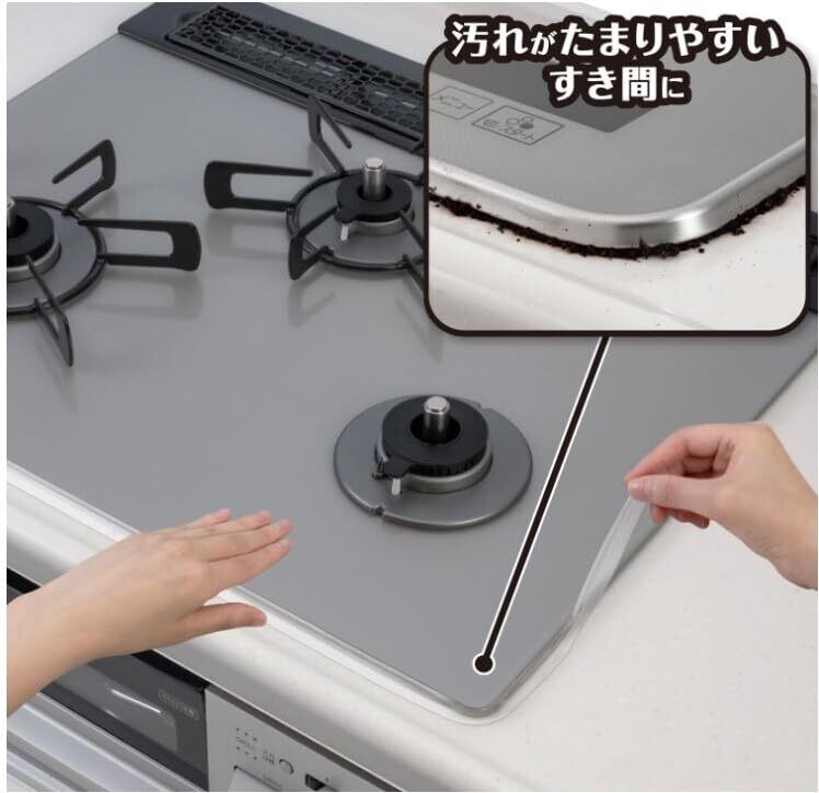 ビルトインコンロのフチのすき間に入り込む汚れを防ぐ。
