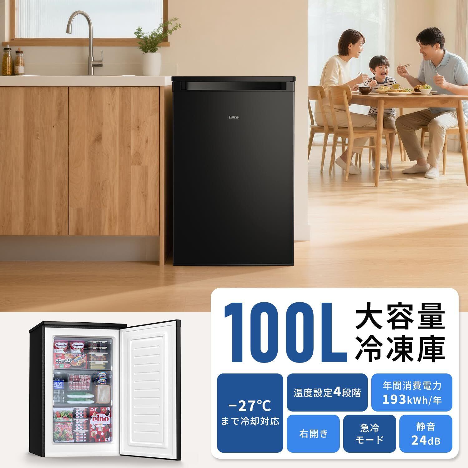 SAMKYO 冷凍庫 100L 前開き 家庭用 セカンド冷凍庫 大容量 急速冷凍 縦型 4段階温度調節 小型 コンパクト 静音 省エネ 耐熱天板 ZU100 ブラック
