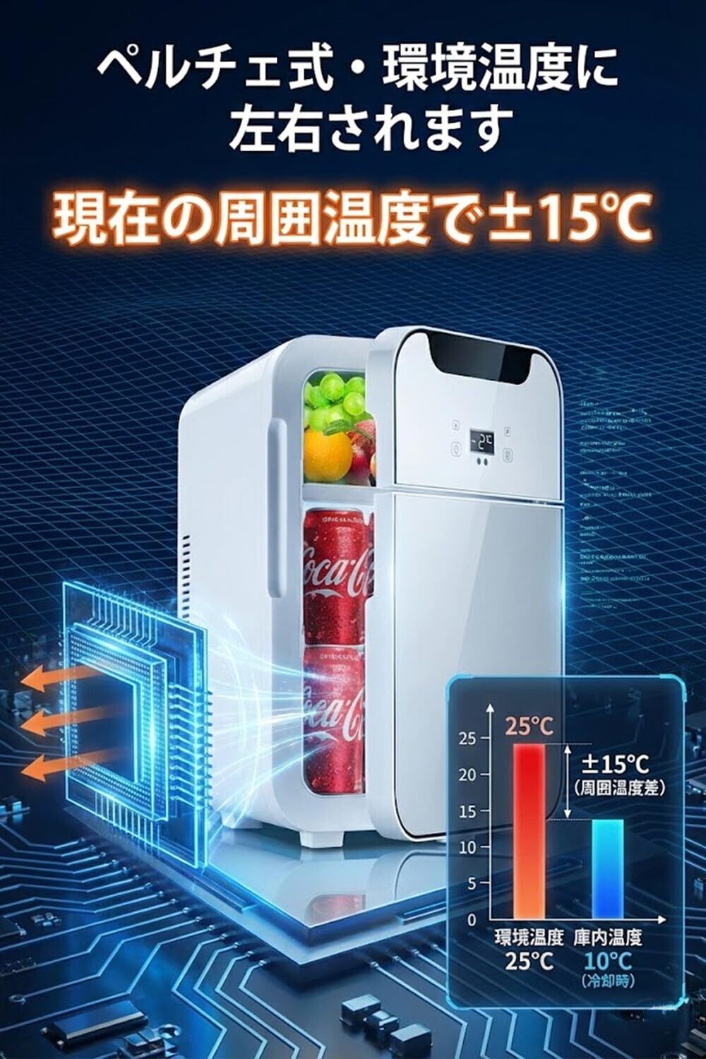 【保温・保冷両用】夏場は保冷機能、冬場は保温機能と、周りの環境温度より25-30度冷却できるし、加熱の場合最高で65°まで達します。最低気温については、冬は-9度、夏は-3度です。季節に応じて2つの機能を使い分けることができます。「ご注意:環境温度によって影響を受けます、夏は-3度、冬は-5度に近く、-9度以内」ご注意:2ドアが上と下の温度は同じです。ご使用いただいている製品は、ファン冷却システムを備えております。長時間の使用により、ファンには多くのほこりがたまり、冷却効果に影響を及ぼす可能性があります。正常な冷却性能を維持するためには、定期的にファンと冷却器を清掃することが推奨されます。