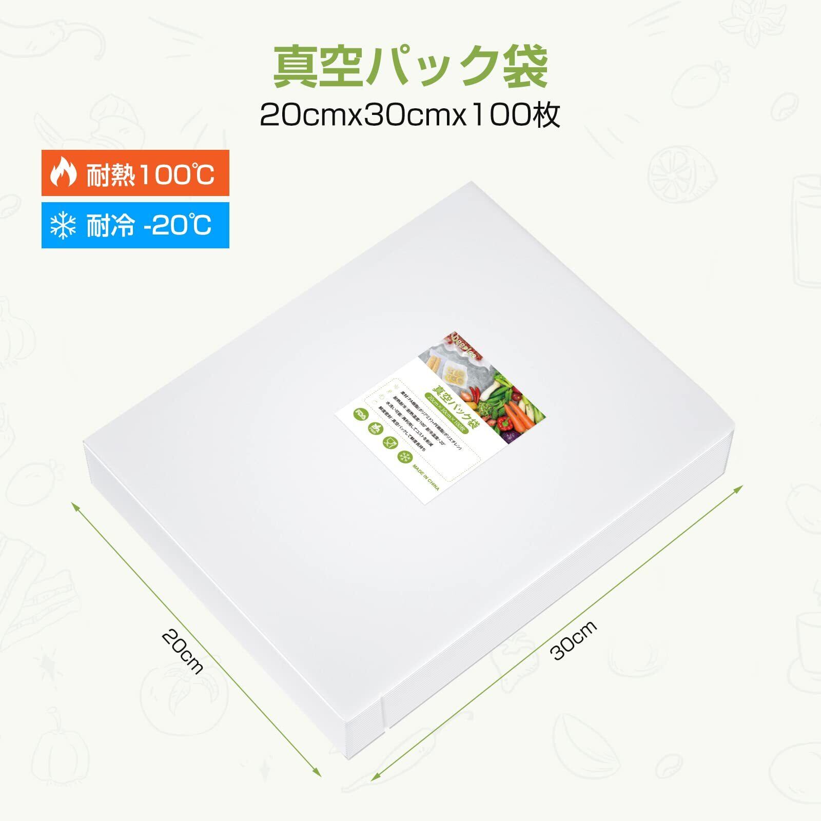 Deeplee 真空パック袋 20cm×30cm×100枚 バキュームシーラー 真空パック機専用袋 真空ビニール 真空包装袋 脱気密封 鮮度長持ち 真空保存 低温調理 耐熱耐冷